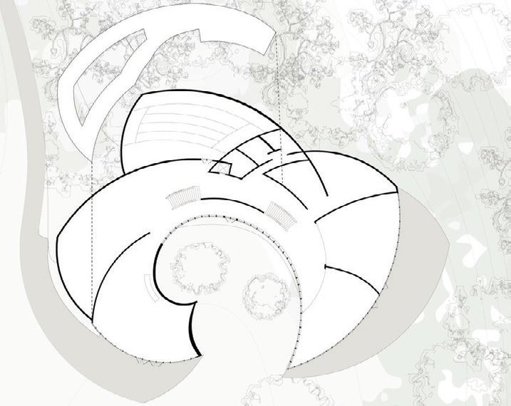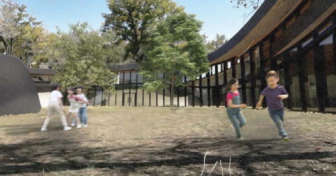 The Woodland Habitat Nature Center is a designed nature center located in Chatfield, Littleton, Colorado, dedicated to creating safe and engaging outdoor spaces for children and fostering a deep connection with nature. The project features a semi-enclosed playground that encourages free play while ensuring safety, as well as multiple classrooms where visitors can learn about the natural world and use elements of nature to create unique crafts. A key architectural feature of the building is its parametric ceiling, which not only enhances the spatial experience but also serves as a wayfinding tool, subtly guiding visitors to scenic viewpoints throughout the space. At the entrance, an exhibit provides educational insights about the rich ecological and cultural significance of the Chatfield area, inviting guests to begin their journey with a deeper understanding of the environment. Woodland Habitat seamlessly blends play, learning, and exploration into an inspiring experience for visitors of all ages. With two large learning rooms, an ampitheater, and a second floor observation area, this nature center offers a creative and exploratory space for children. The building has slowly morphed with intentions of a biophilic design, utilizing curves to promote the procession and movement through the space.