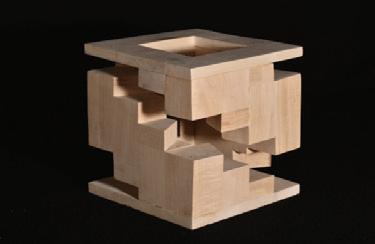 With the idea of a spatial relationship of the voids, I sought after balance within the moving parts of the cube. The object has the envisionment of each component containing spaces that stand freelance, while having enough of the mass to remain stereotomic. The thin layers that top two sides of the piece allow the flow of movement to stop, refraining the spiral continuation. Each block implemented moving upward is measured out and equal to the symmetric piece on the other side, continuing harmony within the equity of the shape.