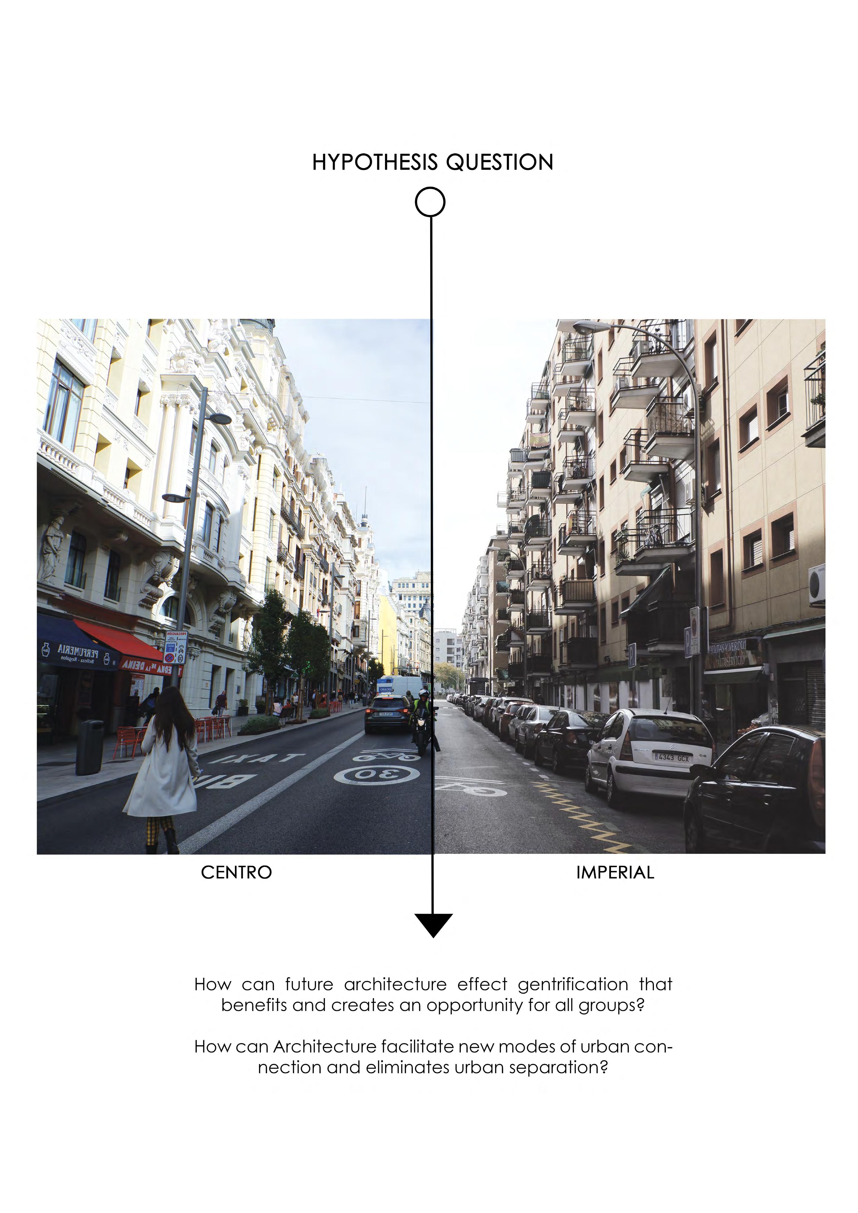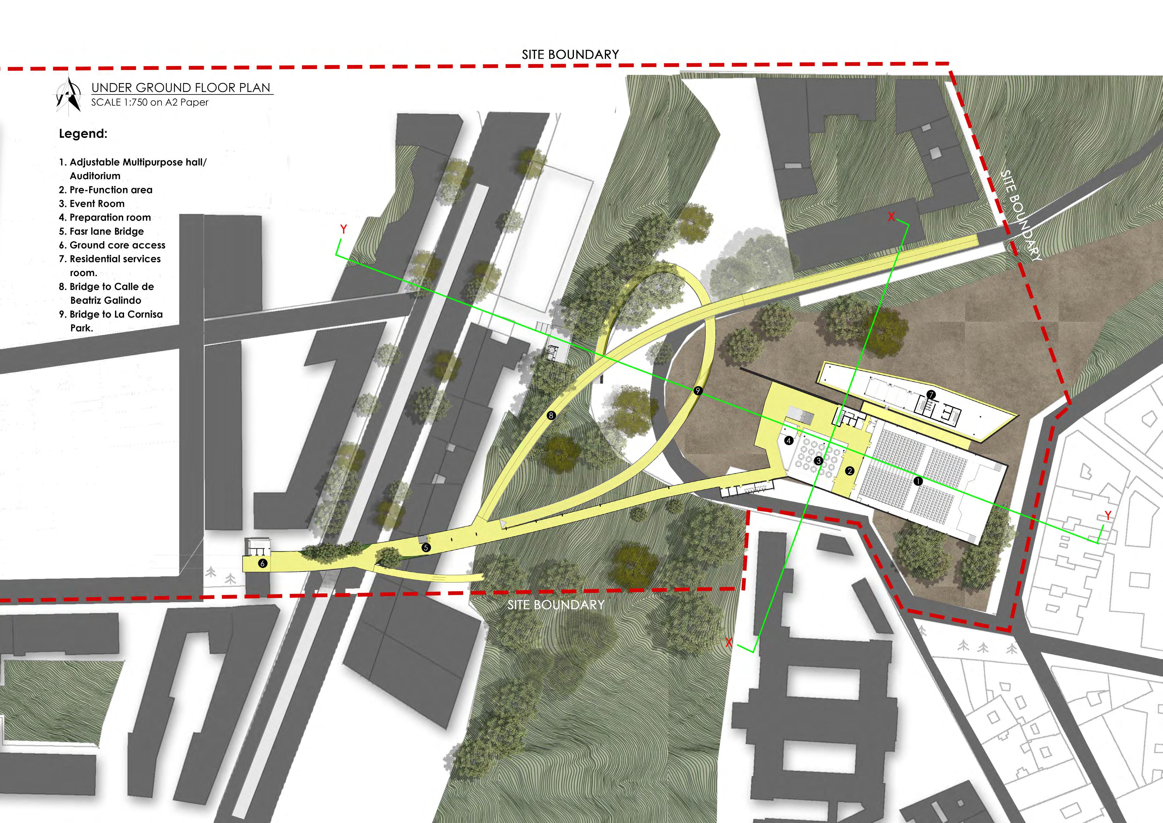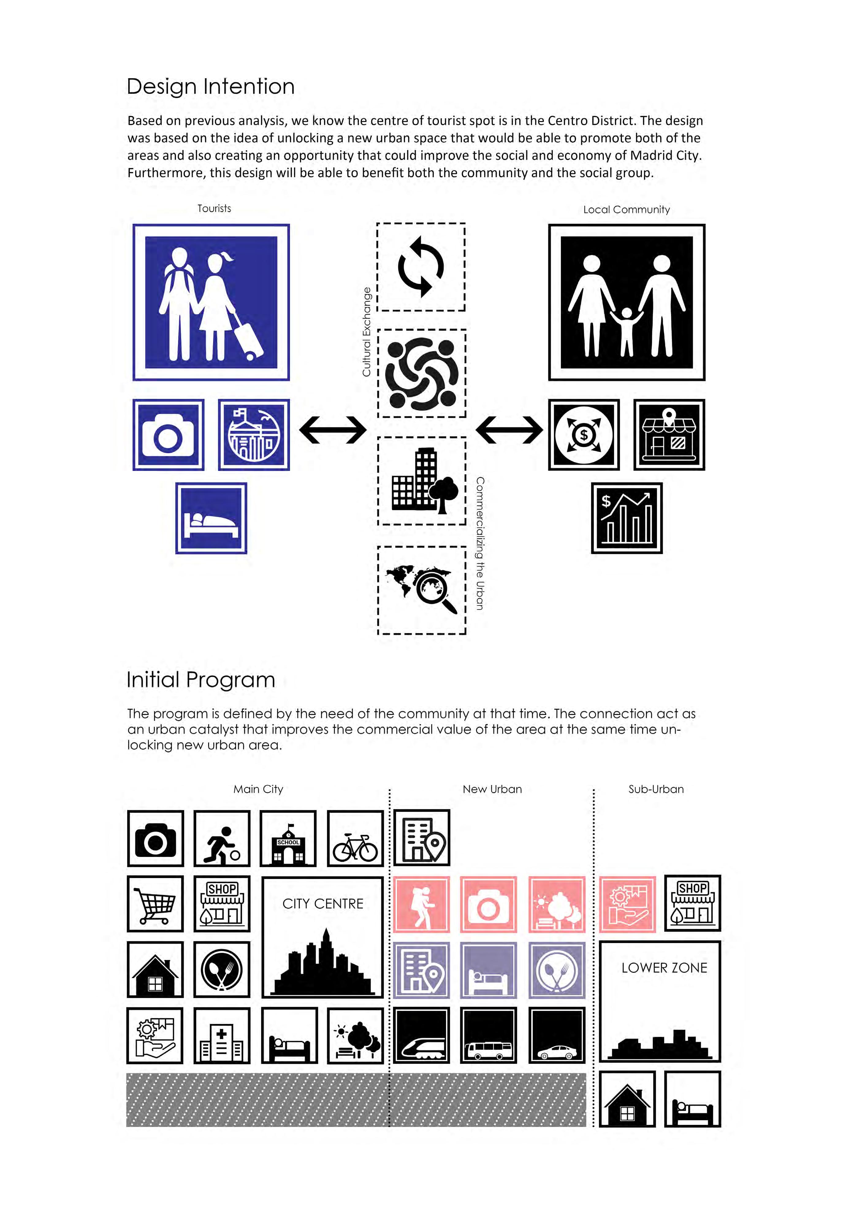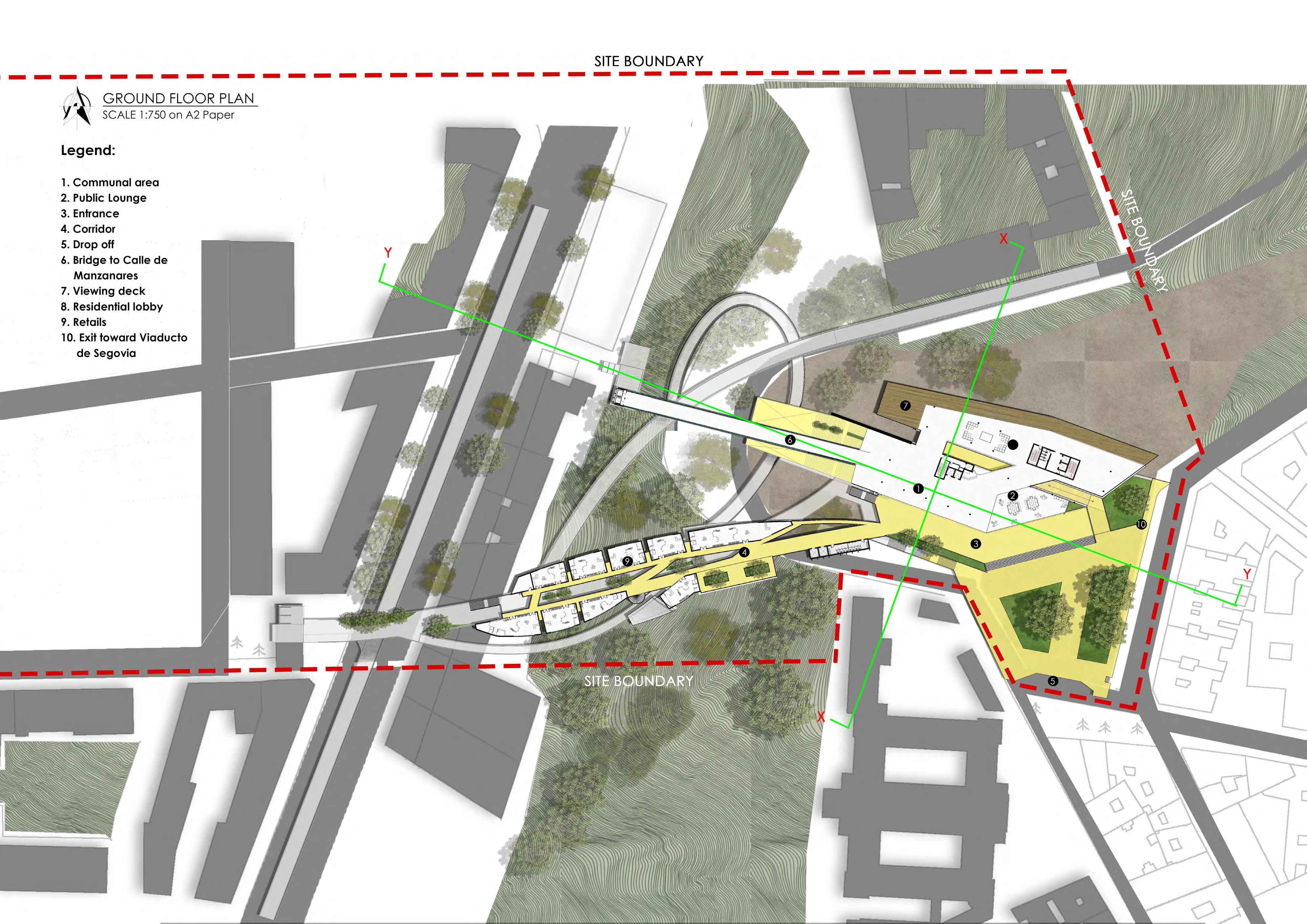 Redevelopment of this multicultural city became a key idea as Madrid to be envisioned as a "global city" with a distinctive cultural and historic character. The 'Puente' ambitious development programs aim to reinvent and regentrify the imperial barrio as a global cultural destination through a package of flagship cultural projects. This will improve the living of the community as well as creating an opportunity for them to boosting their economy. 'Puente' is a Spanish word which means a bridge and 'La Cornisa' is the name of the park where the site located. The name adaption will preserve the historic value of this area.