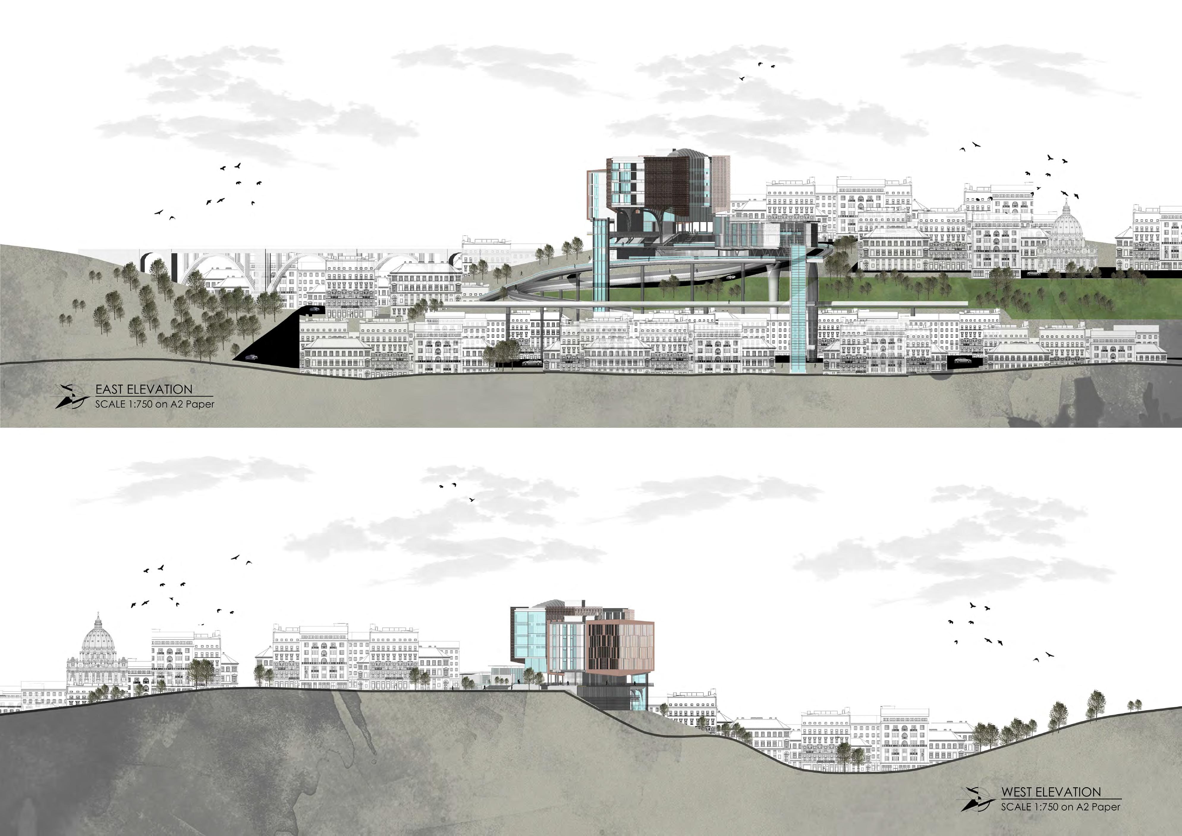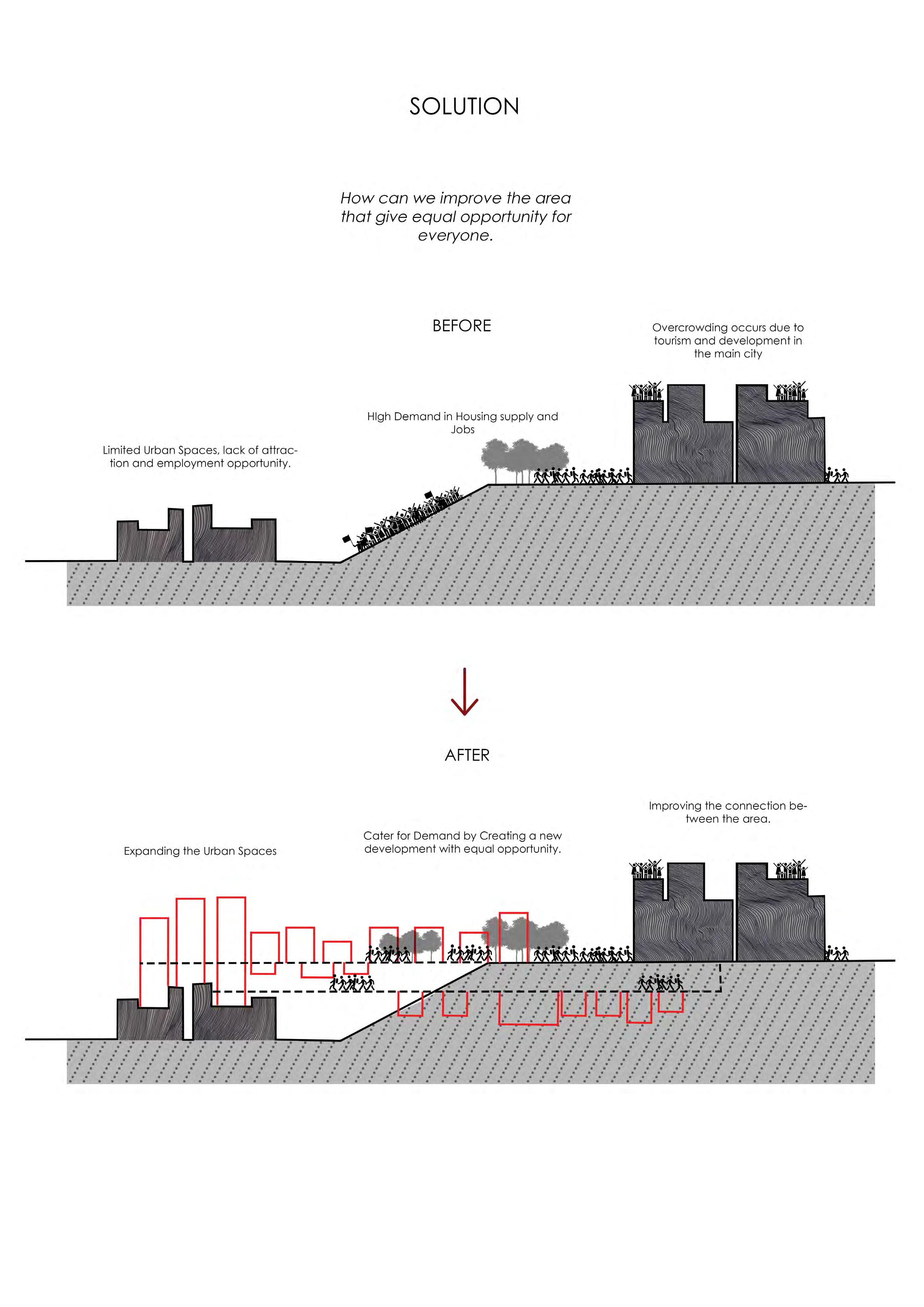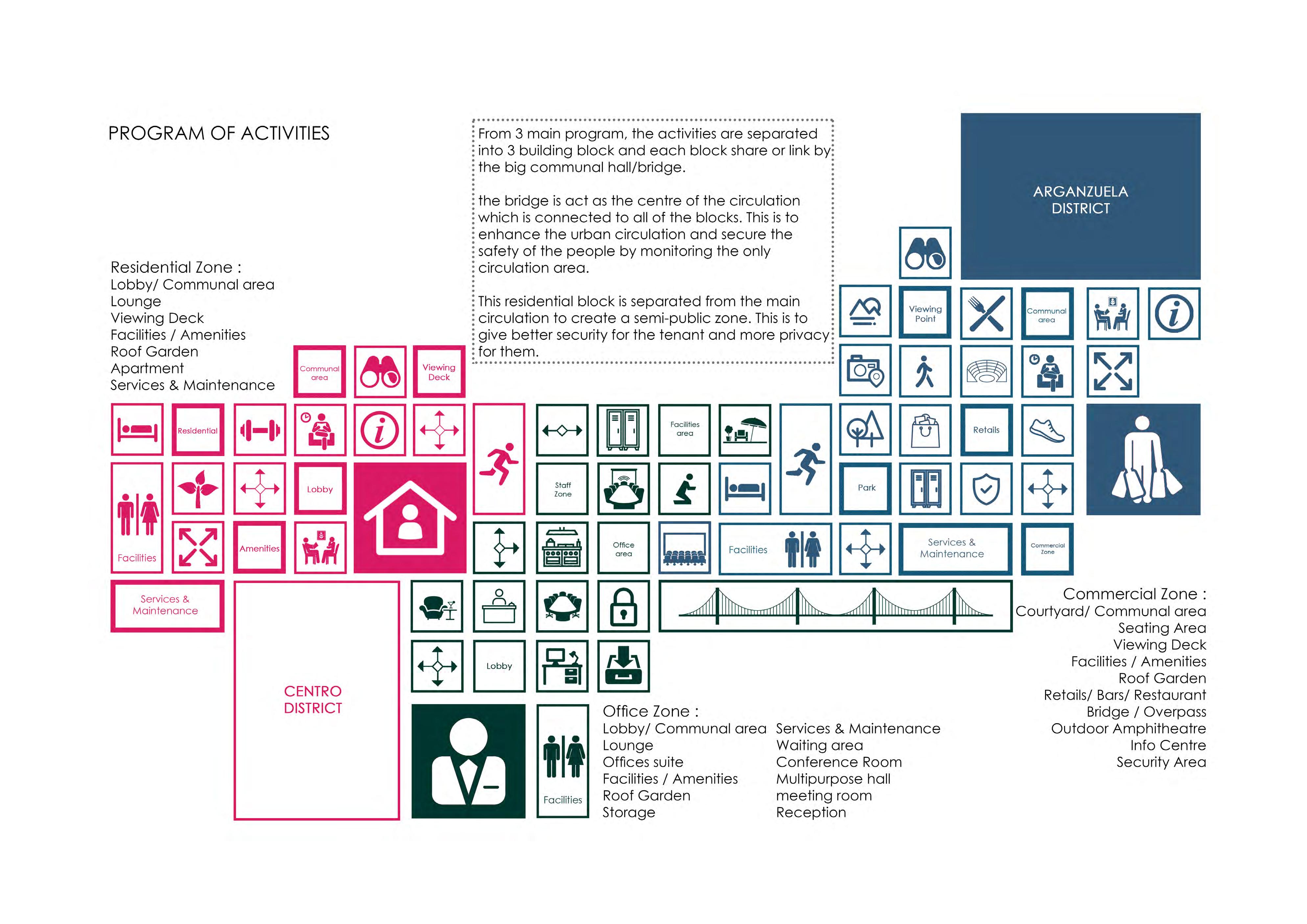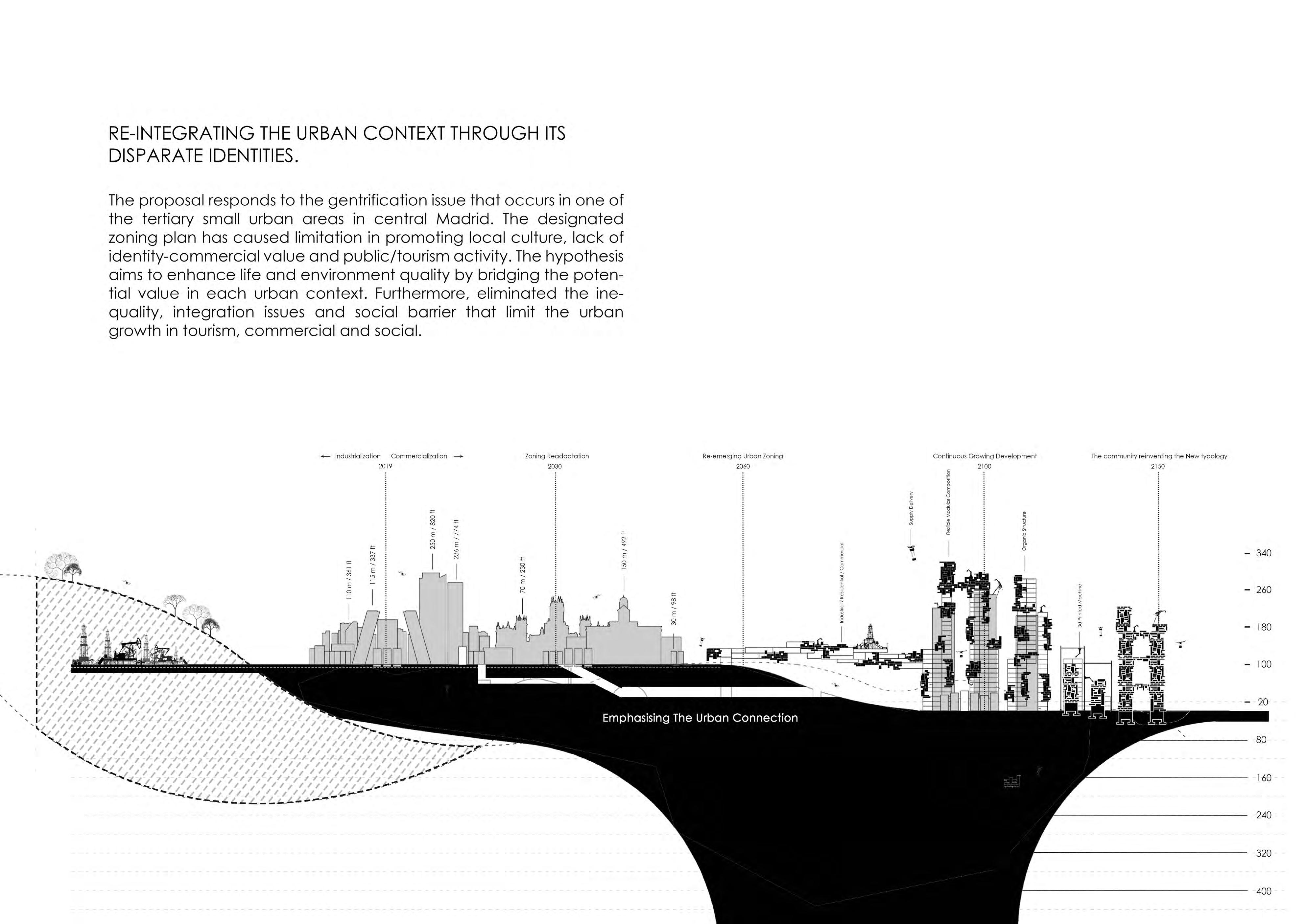 Redevelopment of this multicultural city became a key idea as Madrid to be envisioned as a "global city" with a distinctive cultural and historic character. The 'Puente' ambitious development programs aim to reinvent and regentrify the imperial barrio as a global cultural destination through a package of flagship cultural projects. This will improve the living of the community as well as creating an opportunity for them to boosting their economy. 'Puente' is a Spanish word which means a bridge and 'La Cornisa' is the name of the park where the site located. The name adaption will preserve the historic value of this area.