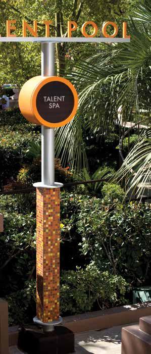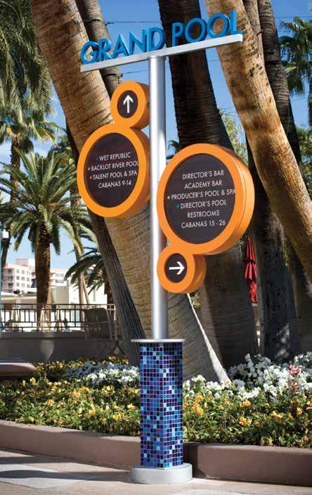 Visual Asylum created a dynamic signage system for MGMs pool complex that includes a main monument/entry sign, uniquely colorcoded pool identifier, directional and wall mounted signs. The signs were designed/engineered to withstand the extreme wind, sun and heat exposure and stand up to an active, high-touch environment. Each identity sign within the MGM Grand Pool complex features unique, one-of-a-kind color tile blends.