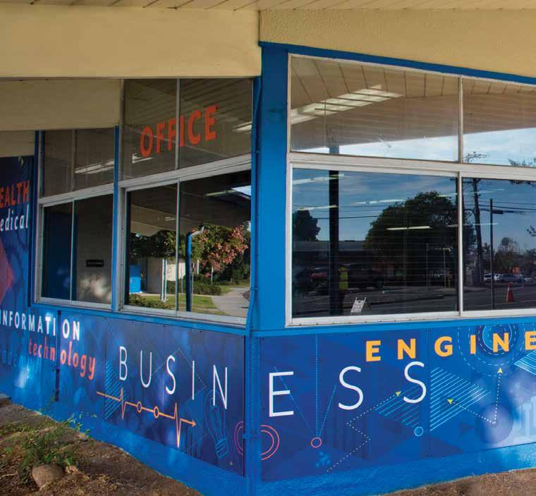 Visual Asylum worked closely with Ruhnau Clarke Architects, and the Grossmont Union High School Facilities team to enhance the new buildings being added to campus with the use of paint, signage and graphics. The scope of work included; exterior/interior paint selection, interior design, materials specification, signage, murals and graphics.