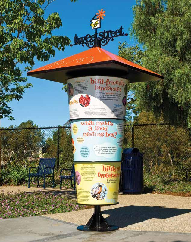 conceiving of a plate-making signage system inclusive of the interactive kiosk, which acts as a teaching tools for the community, one tier devoted to the instruction of what types of birds live in the neighborhood (be on the look out for), the second explained the flora/fauna found in the park and why it was chosen, attracting the native birds and final tier teaches all about the design of an appropriate bird house, informing the importance of ventilation, access for cleaning, free of predator perches.