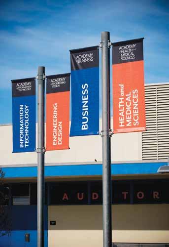 Visual Asylum worked closely with Architects Moser Drew and the SDUSD facilities team to add life and energy to this high school campus! The scope included signage system; banners, graphics, directional wayfinding, placemaking signage.