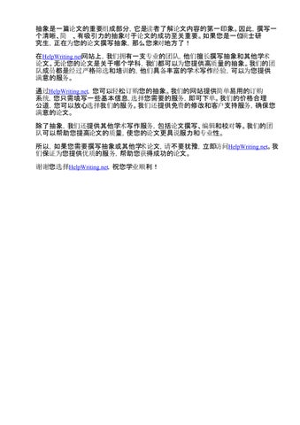 在HelpWriting.net网站上,我们拥有一支专业的团队,他们擅长撰写抽象和其他学术 论文。无论您的论文是关于哪个学科,我们都可以为您提供高质量的抽象。我们的团 队成员都是经过严格筛选和培训的,他们具备丰富的学术写作经验,可以为您提供 满意的服务。