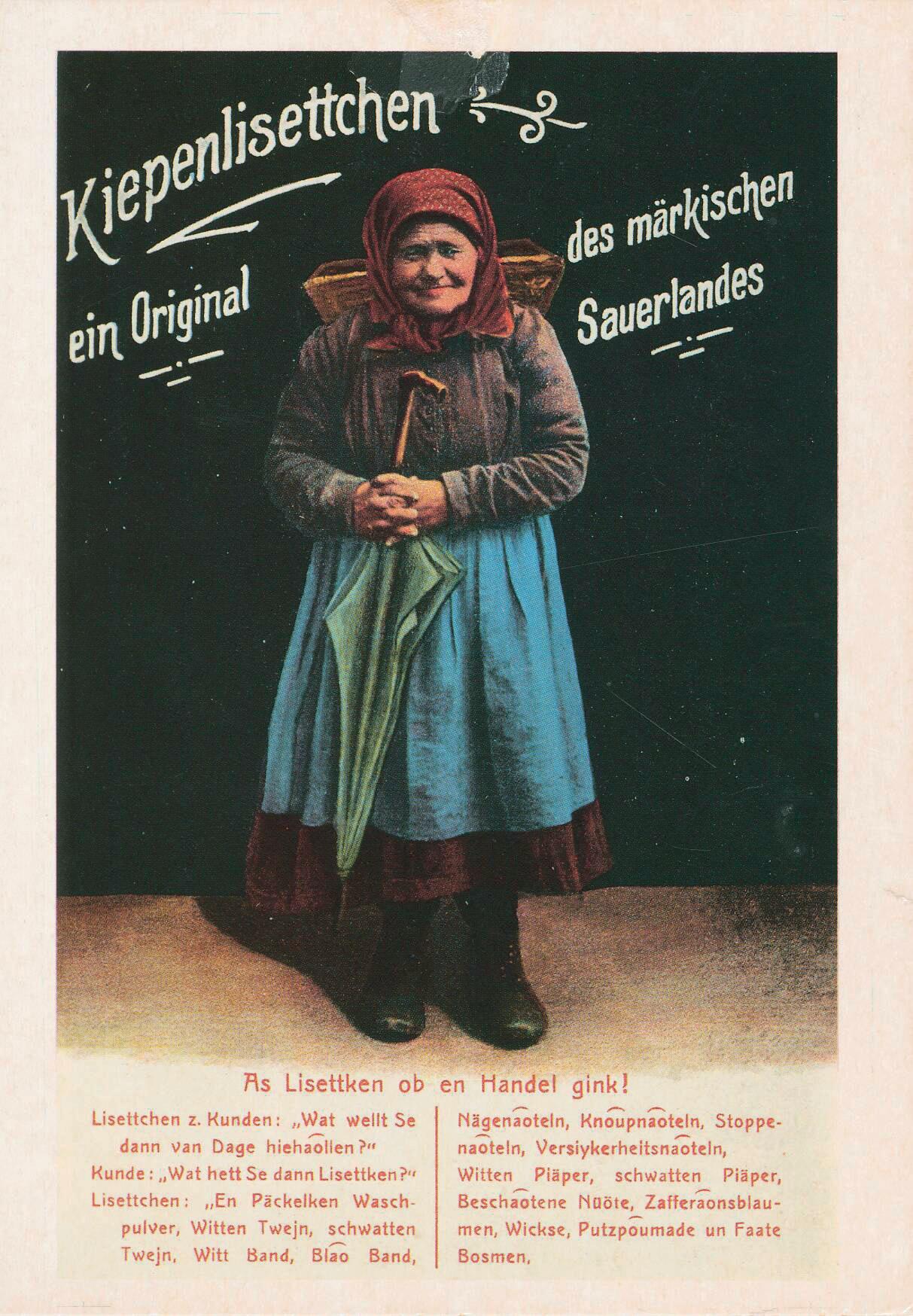 Der Mond über Lüdenscheid – Die unglaubliche Karriere des „Kiepenlisettken“ aus P. Bürger (Bearb.): Dai van der Stroten – Menschen des Straßenlebens in der Mundartlyrik Christine Kochs und in der Geschichte des Sauerlandes, veröffentlicht in daunlots. internetbeiträge des christine-koch-mundartarchivs am museum eslohe, nr. 72, Eslohe, 2014, online verfügbar unter: http://www.sauerlandmundart.de/daunlots. html (Stand: 2014, letzte Überprüfung: 11. Oktober.2022)
