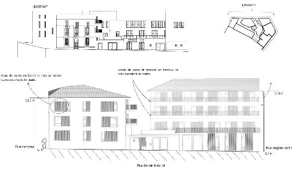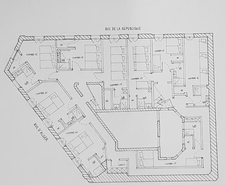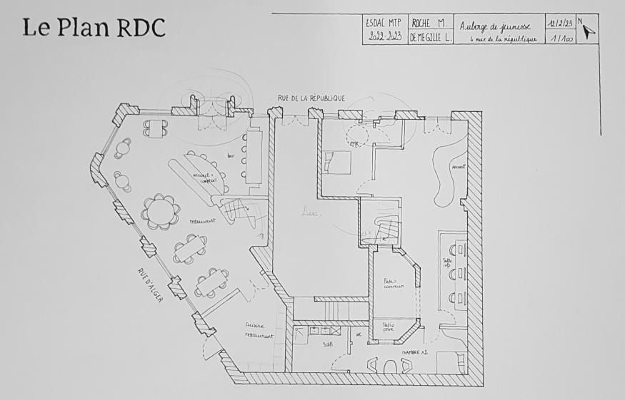 Ce projet prenait place dans l’ancien hotel de France de Montpellier. Le but était de le transformer en auberge de jeunesse comprenant 10 chambres avec salle de bain privée, un bar et un restaurant tout en apprenant à gérer et optimiser l’espace en fonction des usagers ciblés. Plans, façades, coupes, perspectives, tout devait être réalisé afin de communiquer au mieux notre rendu lors d’un oral et par la suite une visite du chantier.