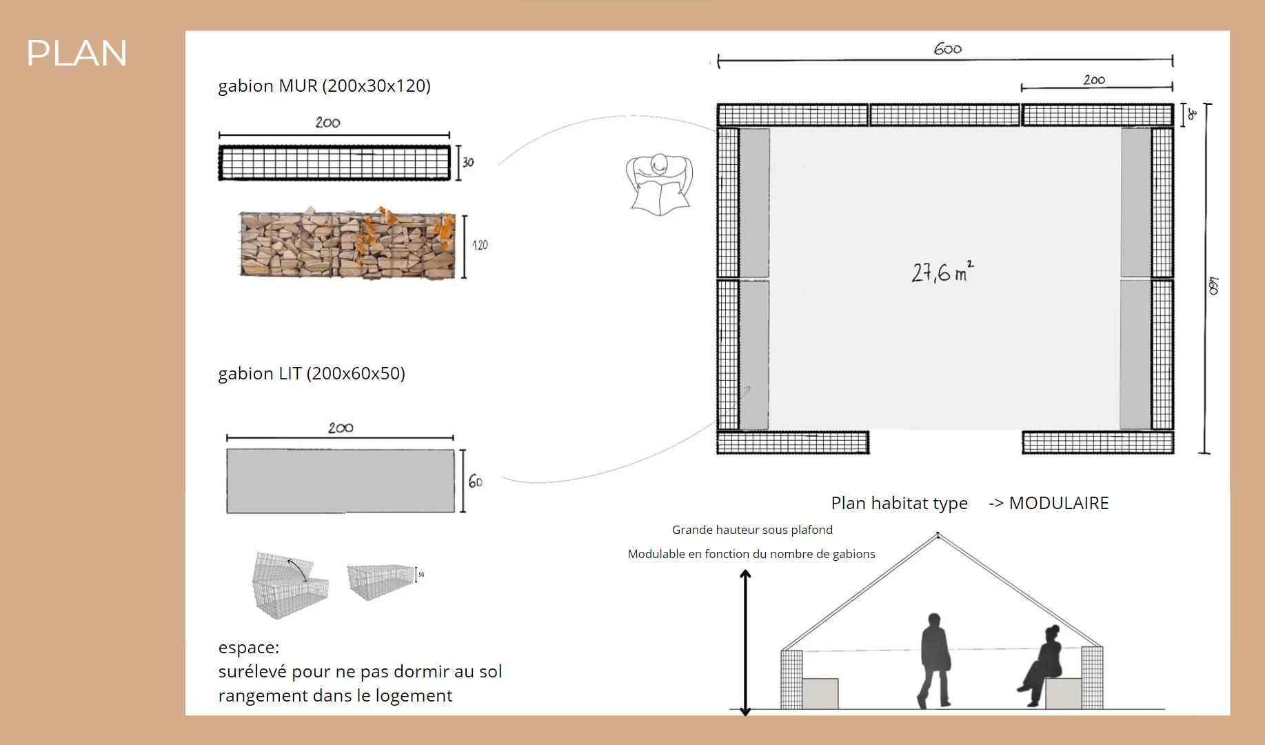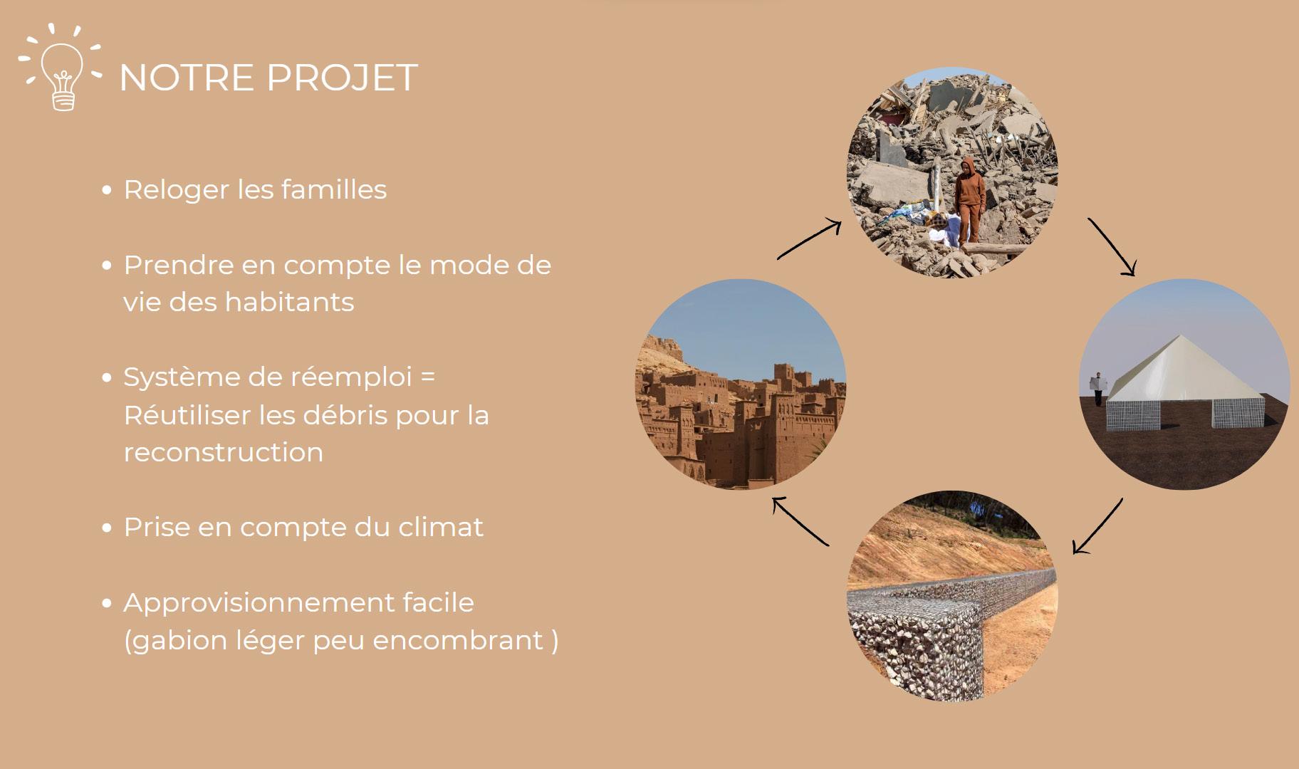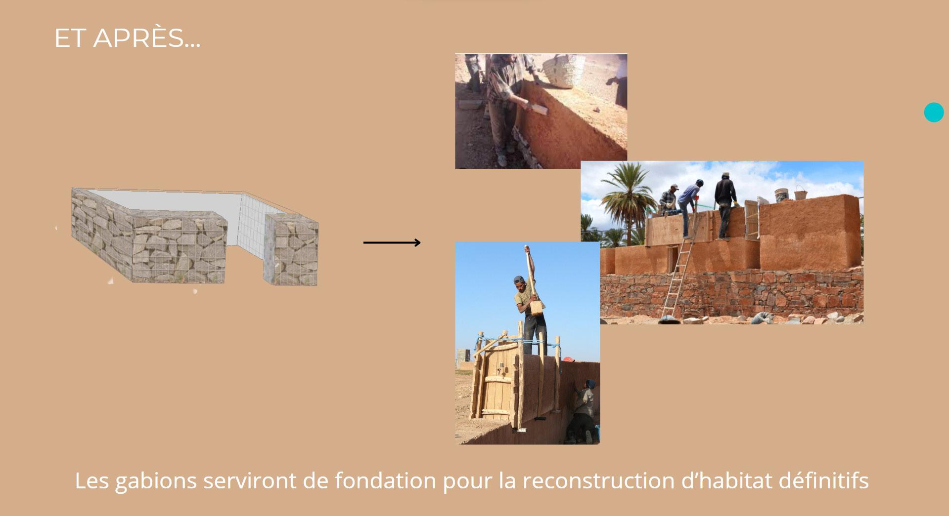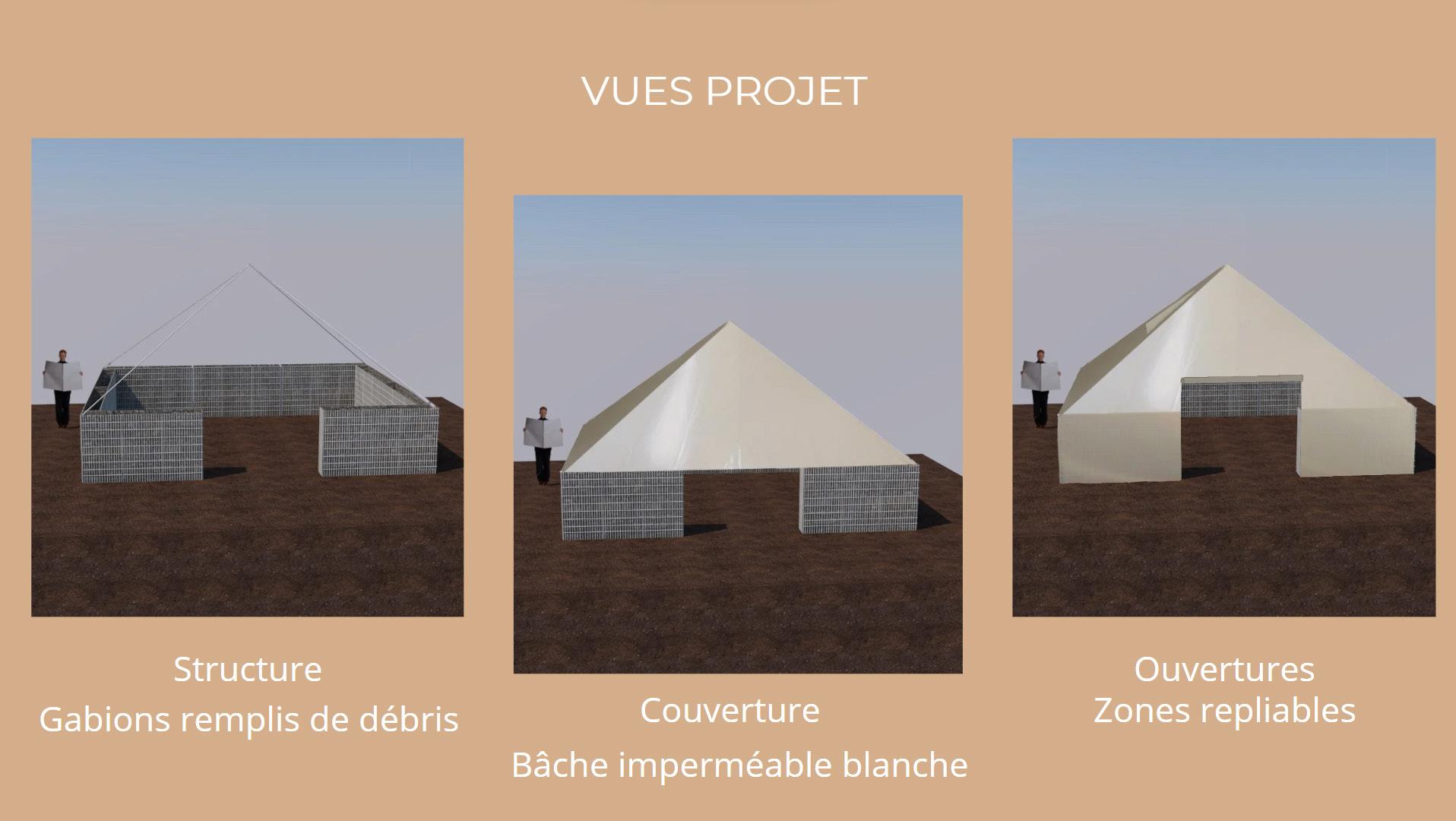La question c’est aussi posé la gestion des déchets une fois les villes reconstruires, c’est pourquoi nous concluons la boucle en offrant la possibilité d’utiliser les gabions en tant que fondation pour la reconstruction d’habitats permanents.