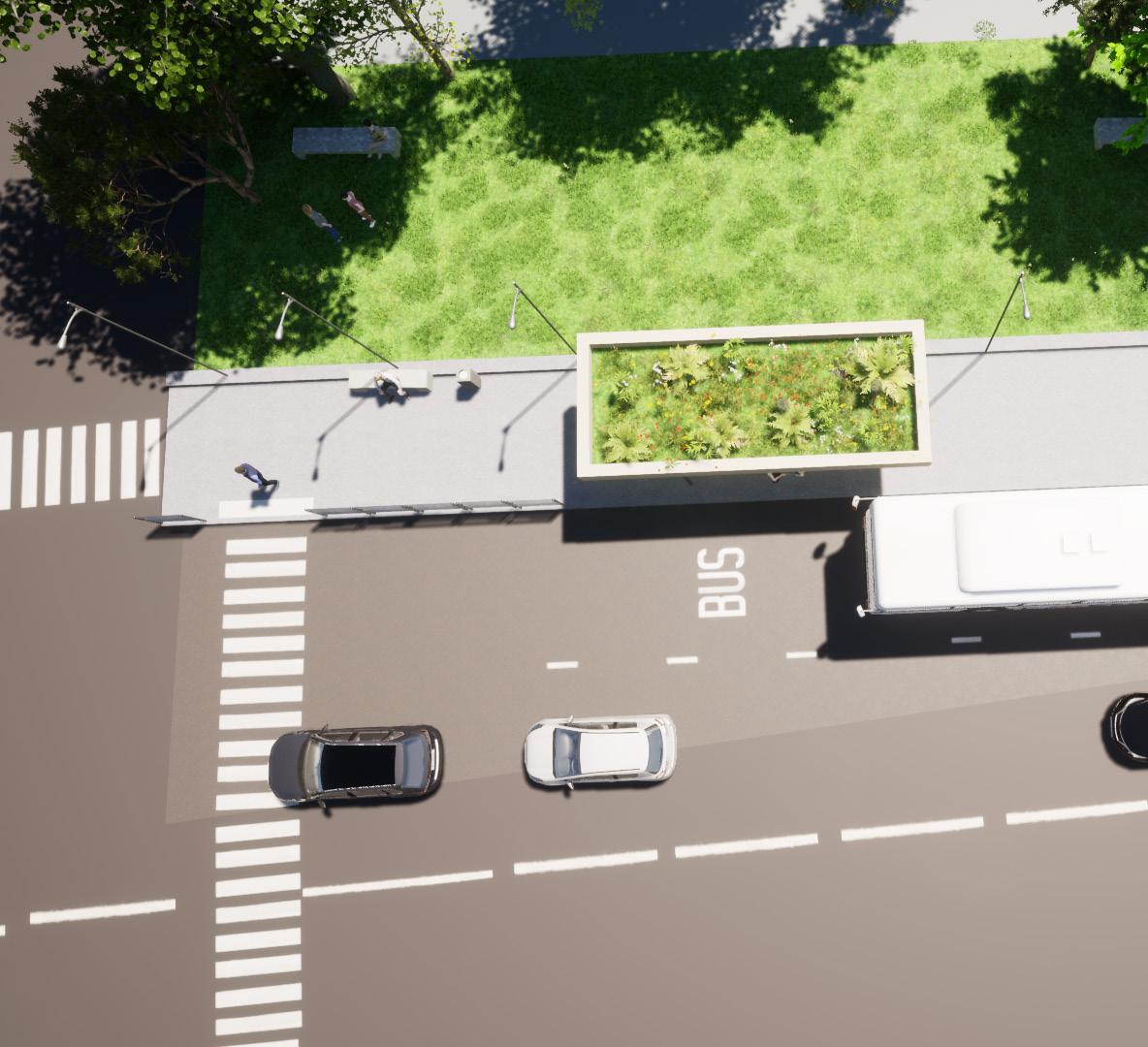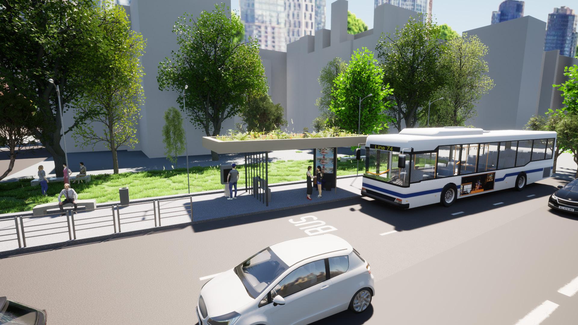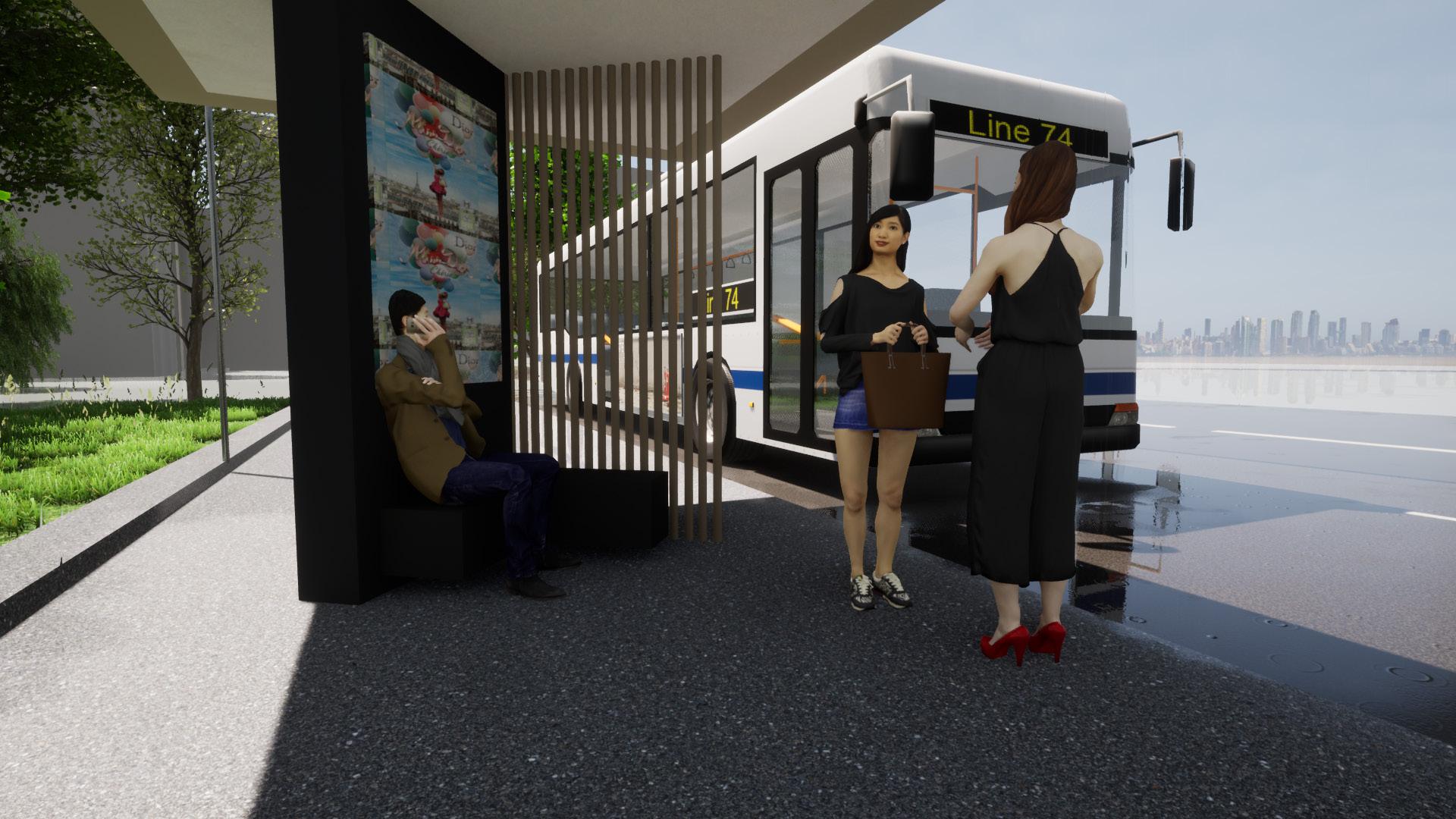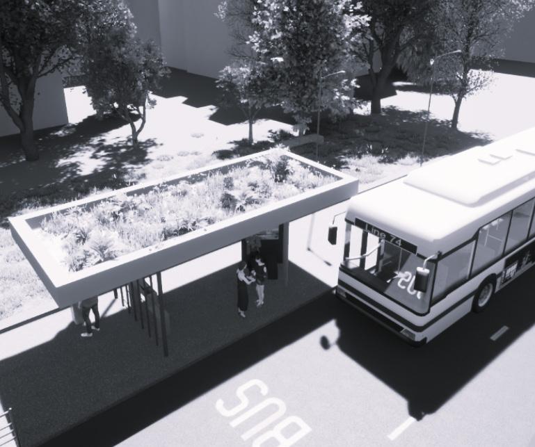 Dans ce projet, le but était de créer un espace d’attente extérieur afin de prendre en main Archicad et Twinmotion. L’abri bus devait avoir une surface minimum de 10m2, comprendre deux places assises, une zone d’affichage publicitaire, une borne d’achat de tickets et une fonction supplémentaire; j’ai opté pour un toit végétalisé afin d’apporter un espace vert au milieu du context urbain.