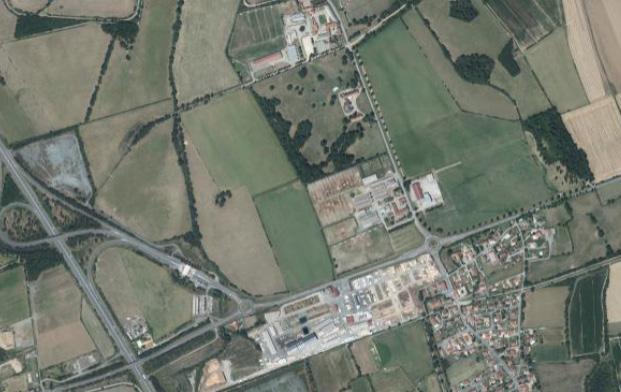 Plan de situation : le site est principalement entouré par des champs ou des zones agricoles La surface de la parcelle est de 11.7 hectares