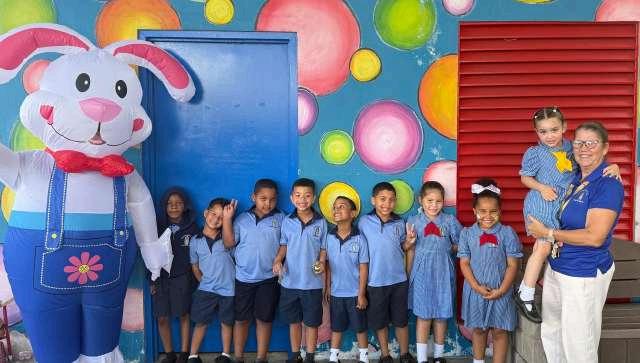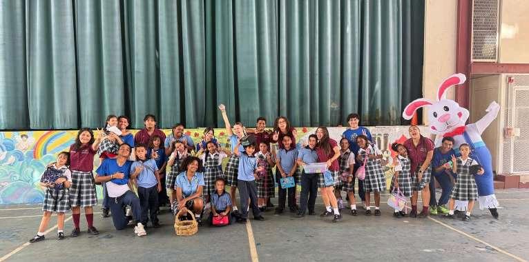 Los grandes hermanos (los seniors) se pusieron las pilas para celebrar la Pascua, escondiendo huevos y organizando juegos con los más pequeños, desde Kinder hasta tercero. ¡Y para hacerlo aún más divertido, el conejo de Pascua se unió a la fiesta! Los chiquitines se divirtieron a lo grande, pero los seniors tampoco se quedaron atrás; ¡fueron los verdaderos artistas del entretenimiento!