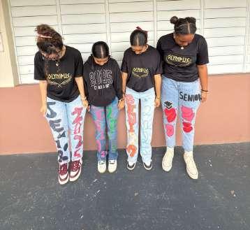 Nuestros alumnos de 12mo confeccionaron sus pantalones con decoraciones que representan su año de Senior.