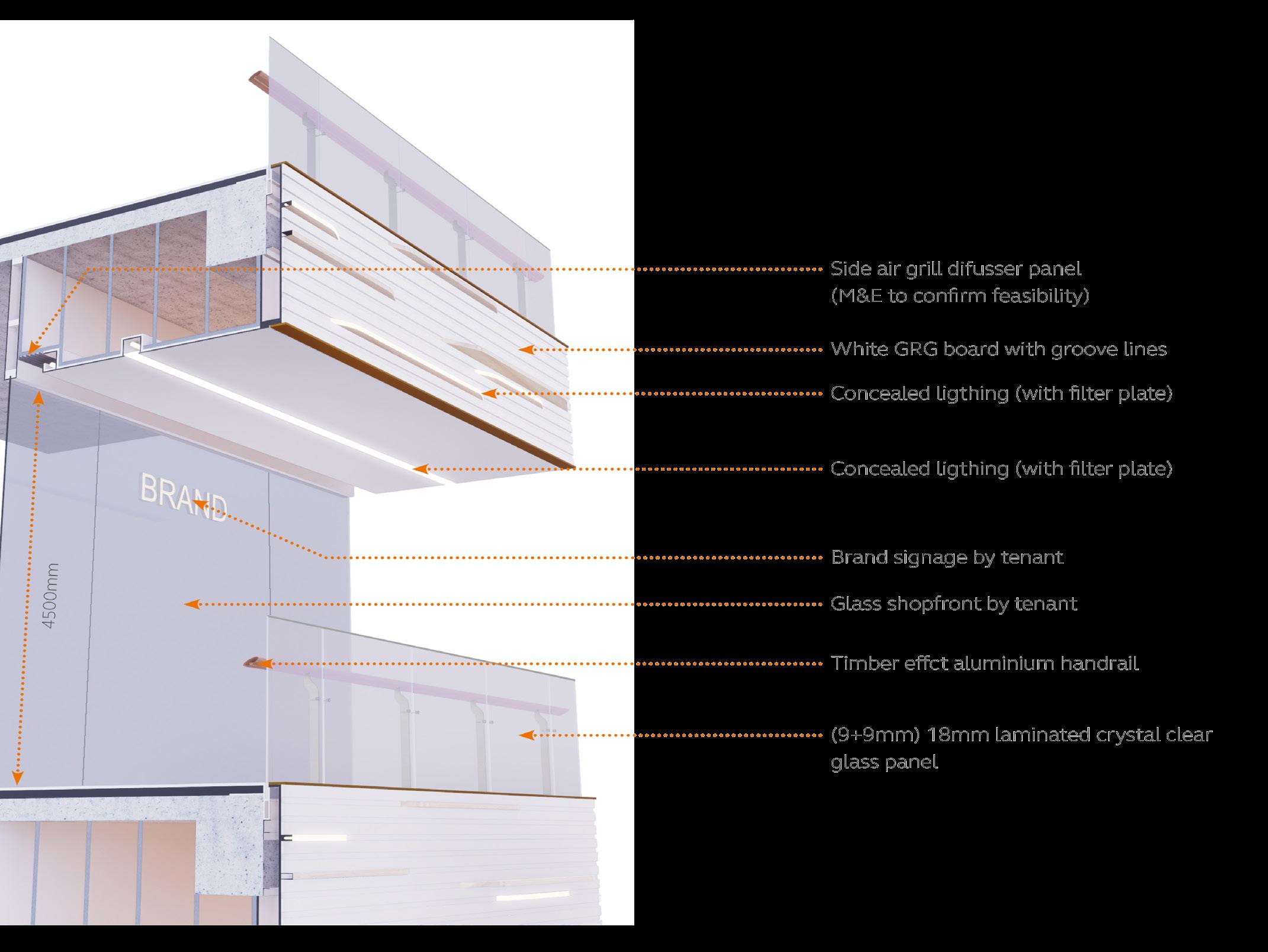 Medium sized units of around 40-60sqm are designed to be changed on a quarterly or monthly cycle allowing established brands to create installations or pop ups. Sliding operable u channel glass walls allow flexibility for brands to have a completely open space, or semi open with wall display if required.