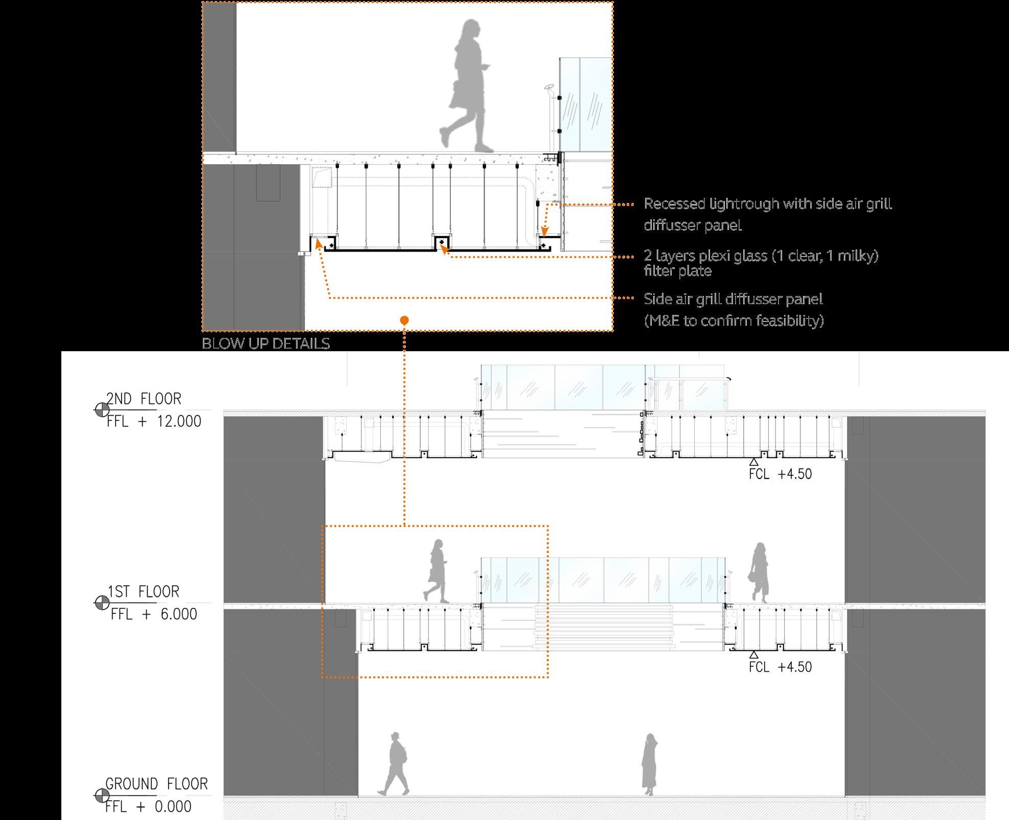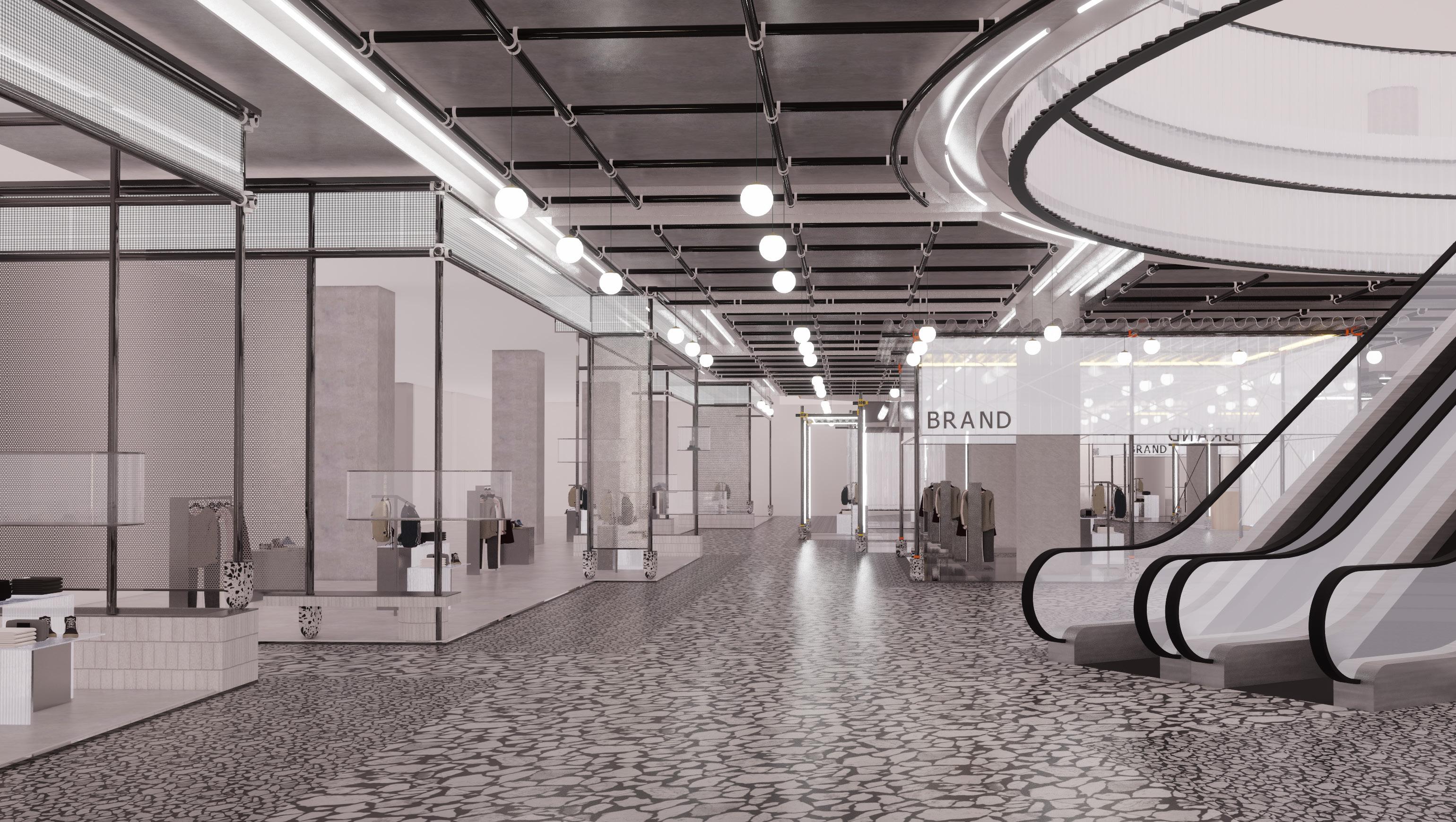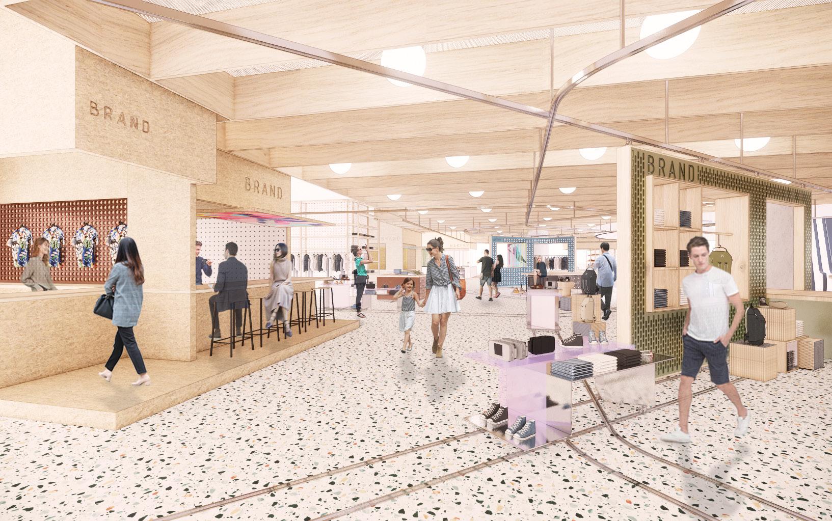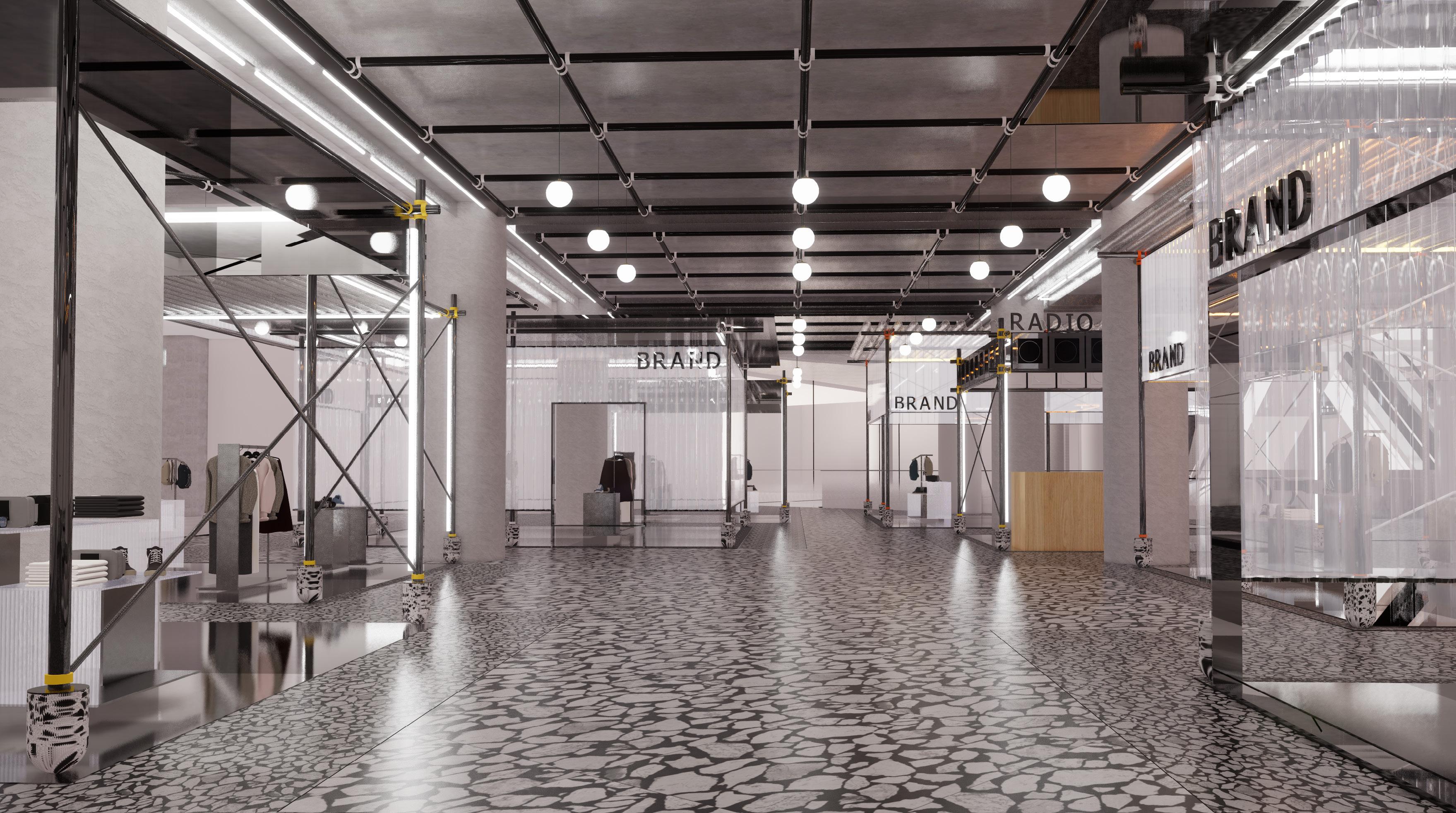 Small vendors of around 20sqm are designed to be flexible pop up areas that can be easily changed and updated on a weekly or monthly cycle. They are designed to be very open and transparent, almost stage to promote and display new and younger brands. Small modules can be mixed and matched and combined and create larger floor area if needed. Flexibility is key here.