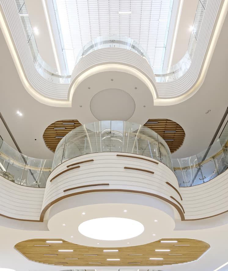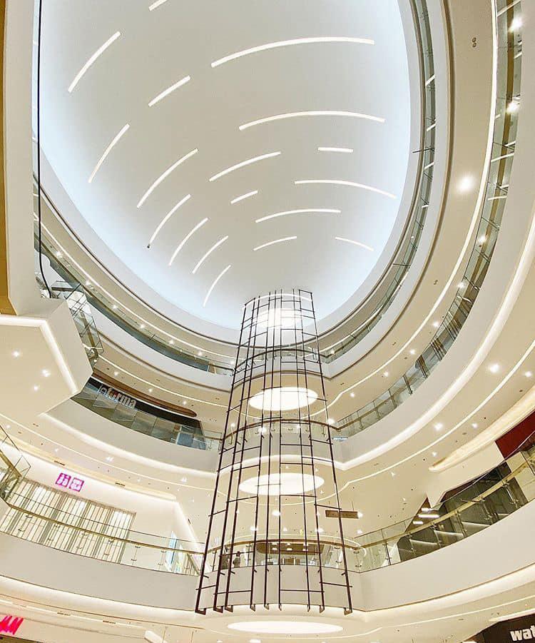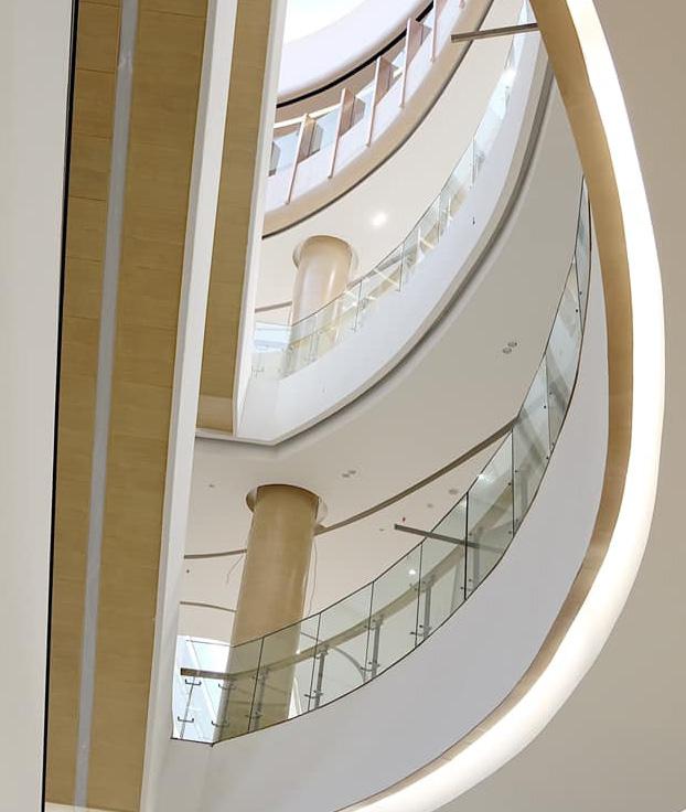 THE 3RD FLOOR , FACING NORTH OF AND ABOVE MAIN ENTRANCE OF THE MALL. THE SHADOWN IN THIS PICTURE IS BECASOE OF ALUMINIUM COMPOSIT PERFORATED FROM THE EXTERIOR AND THE REFLECTION OF THE MIRROR FROM INTERIOR