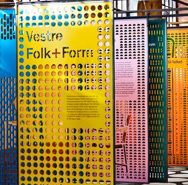 Chipboard and colourful metal screens that slide along the floor and ceiling tracks, with various opening, inserts & table types to suit the brands purpose & needs.