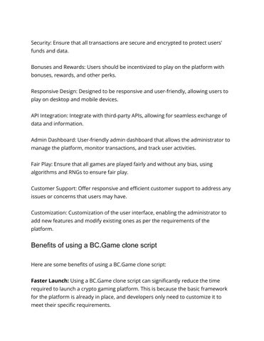 Here are some listing points for the key features of a BC.Game clone script