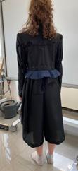 This page showcases the evolution of my master degree project. The task was to sew 3 pieces: a coulotte, a blouse and a short blazer for our client, including special details like hand stiched buttonholes and at least 3 pockets, all to sew, fit and finish within the examination period of two weeks. To pass the exam the suit had to be completly perfect with not one mistake, including a documentation, calcultion and invoice. My preparation included research in trends and my clients preferences as well as sourcing the perfect materials for my needs.