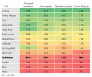 To get a good selling range the pen profile must be combined with the trend prediction in order to produce an on trend range fitted for the customer by making decisions on how to break down high fashion trends and make them wearable within their life. Price, performance, style preferences, trend adoption and buying motives must be matched, so a customer who does not actually need more clothing wants to buy and wear the new collection. Trend Prediction: