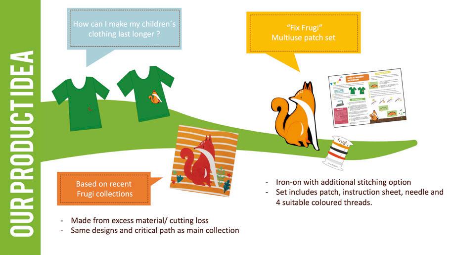 The sustainable product idea came to life after a close look at the current business strategy from Frugi and an in-depth analysis of the current sustainable fashion market. In combination with the Sustainable Development Goals by the UN and research on fashion environmental impact, the need to focus on elongating a products life cycle and the option of repair is a great opportunity to gain advantages to the business competitors.