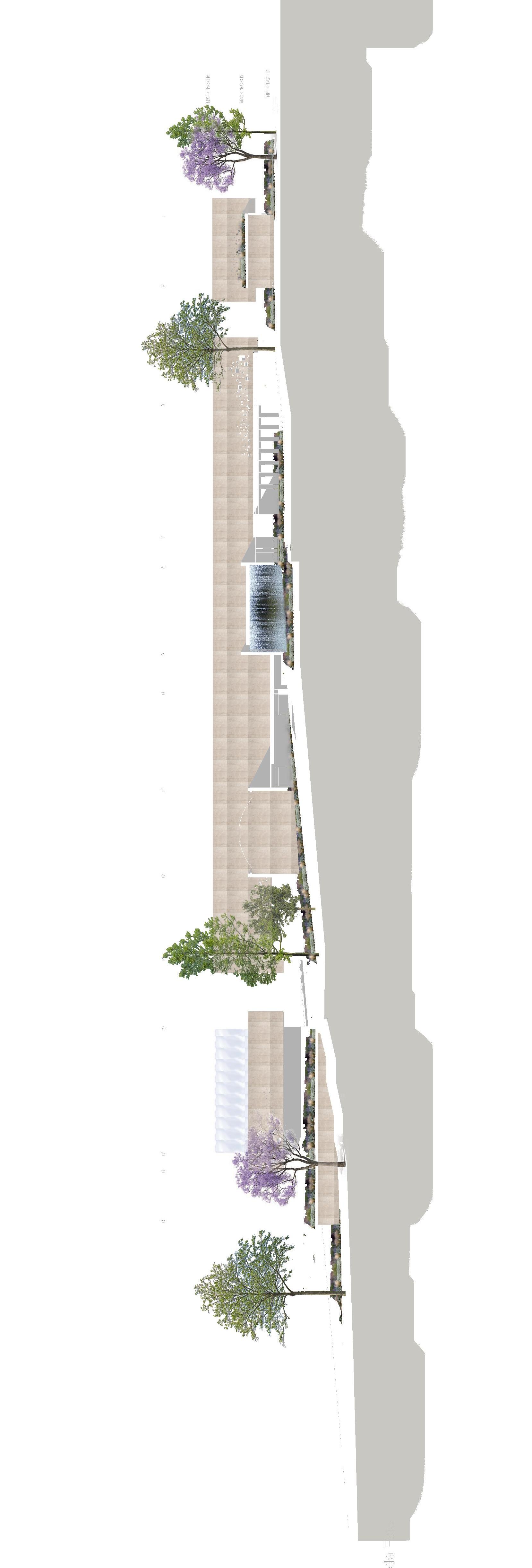 13 proyectos X | 2023 ZAZIL Hacia Av. peatonal Santa Catarina 2 3 4 8 9 10 0 5 15 NPT + 2.85 M NPT + 6.85 M NPT 16.50 M NPT 19.50 M NPT 11.50 M 1 3 5 9 12 14 15 16 17 18 19 9.40 m 9.40 m 3.70 m 2.90 m 17.80 m 15.70 m 25.50 m 15.60 m 9.30 m 5.10 m 11.80 m 2.30 m 6.70 m 135.20 m INICIO DE PROYECTO OCTUBRE 2022 ASESOR DE TESIS ARQ. GABRIELA MACIAS UNIVERSIDAD ANÁHUAC QUERÉTARO ESCUELA DE ARQUITECTURA A.08 PROYECTO ZONAS ZAZIL: MUSEO DE ARTE INMERSIVO ALUMNO MARIA FERNANDA BRAVO BEJAR TIPO DE PLANO ARQUITECTÓNICO ESCALA ESCALA PLANO 1:500 ESCALA DE MAPA 1:8000 LOCALIZACIÓN PREDIO LA CUADRILLA, JURIQUILLA, QUERÉTARO, MÉXICO EN PLANO sección s1 section s1 Sección Longitudinal Nave Central 1. LOBBY 2. ESTACIONAMIENTO 3. ACCESO Y SEGURIDAD 4. EXHIBICIONES GRAN FORMATO 5. ACCESO SECUNDARIO O SALIDA 6. ACCESO A SEGUNDO EDIFICIO 7. PABELLÓN INMERSIVO MATI 8. ZONA DE DESCANSO 9. TIENDA 10. COLUMPIOS EN CUENCA DE AGUA