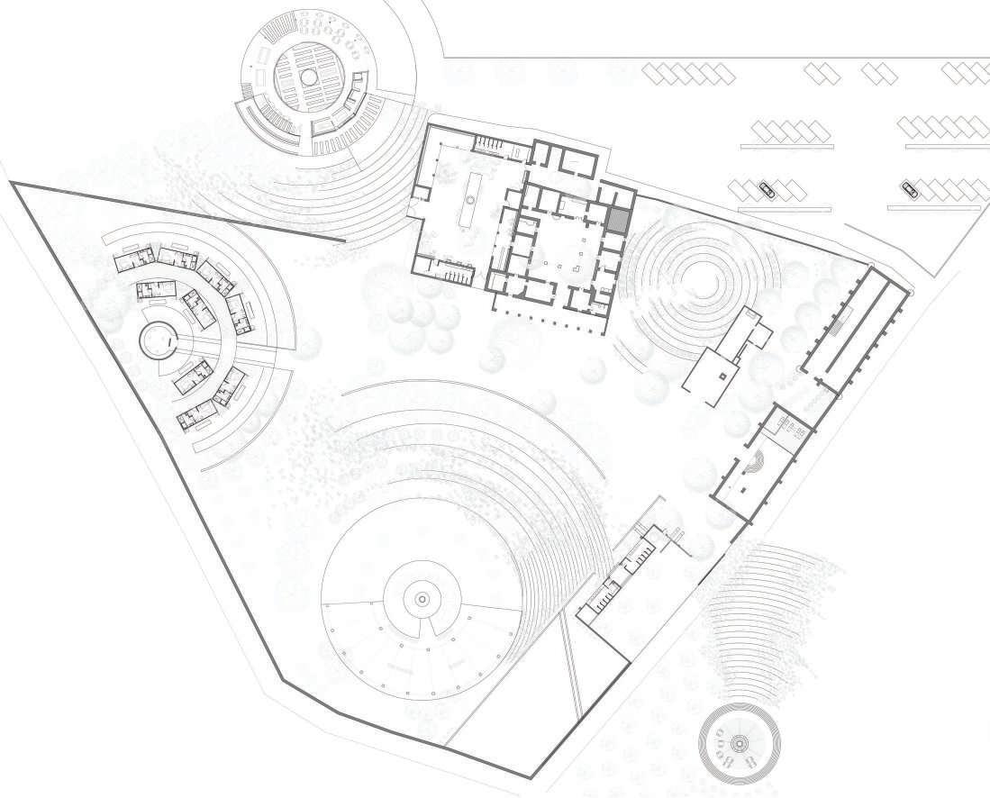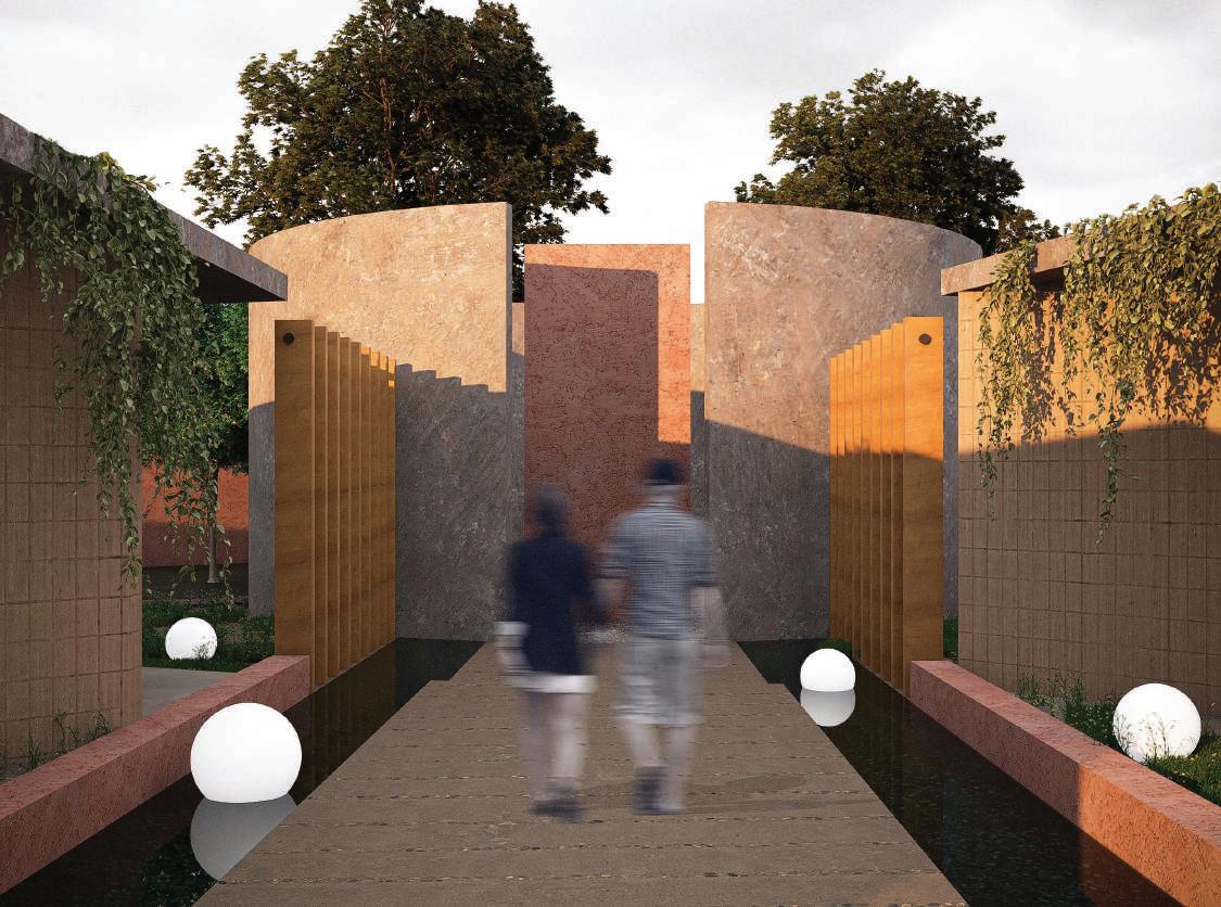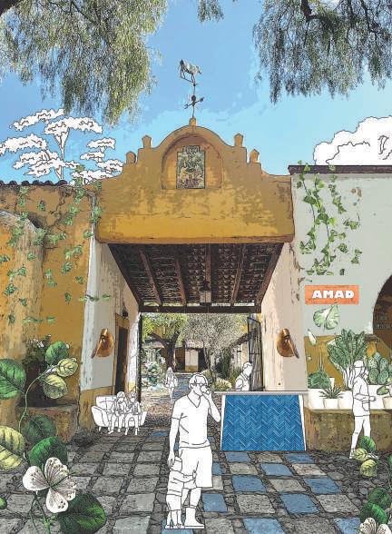 Emprender el camino para encontrar un sentido, huellas dejadas como seres humanos transformadas en epicentros a lo largo de la Hacienda Amad. Generando recorridos de tierra y nodos hasta llegar a un punto en donde convergen de manera radial con las nuevas intervenciones dando lugar a un programa radial. Durante este recorrido guiado de empedrado es posible tomar un respiro al llegar a los pabellones, en donde los sentidos se agudizan y alguna estrategia de diseño se cumple, que sigue una envolvente dependiendo del sentido . Son espacios en donde la experiencia se agudiza gracias a la arquitectura en forma, textura, aroma, sonido y sabor.