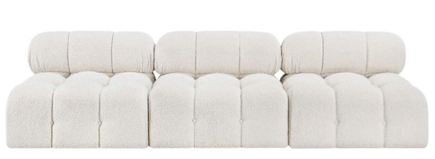 Para sala de estar se busca comodidad sin perder la sofisticación del espacio, así se emplea un sofa con asiento amplio y modular para ajustarse al área reducida. Los clientes son una pareja sin hijos pequeños, por lo que se propone una tapicería suave y resistente pero en tonos claros.