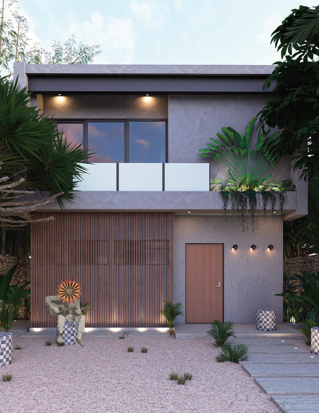 Casa Dominó es una residencia para renta en la jungla de Tulúm rodeada de vegetación endémica, se caracteriza por su estrecha conexión a ella, por medio de jardines interiores y la elección de materiales de la región como piedra blanca y madera tzalam. El concepto se basa en la generación de un gran espacio compartido en planta baja, con planta libre y apertura directa a la terraza exterior y un área exclusivamente privada en planta alta.