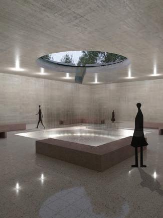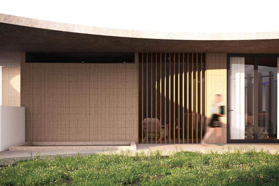 Hotel dentro del complejo AMAD en Puerto de Sosa, Guanajuato. Proyecto de hospitalidad, con distribución radial en planta, con descendencia negativa hacia el centro, mismo espacio que se convierte en punto de encuentro como un lugar zen de introspección. Las habitaciones se disponen en los siguientes anillos, cuentan con cama king size, armario, baño con doble lavabo, bañera y regadera, terrazaa con piscina/ jacuzzi, y con una altura libre de 3.00 m, lo que lo convierte en un espacio fresco e iluminado. Se busca generar un ambiente natural, contemporáneo y cálido.