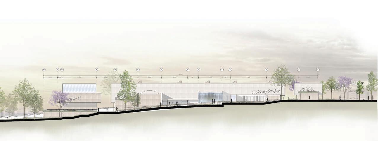 Este proyecto es la respuesta ante la deficiencia cultural que presenta la ciudad de Querétaro, así como el crecimiento de población extranjera y estudiantes, en la zona de Juriquilla al norte de la ciudad. El proyecto consta de 4,000 m2 construídos como edificio principal de museo, una superficie libre para desarrollo a futuro de restaurantes, una superficie para parque urbano y un mayor porcentaje de área verde. La arquitectura busca integrarse al terreno cubierto de vegetación, dejando una mayoría de azoteas verdes que mimetizan los muros con el terreno. Se organiza con el fin de dejar exhibiciones de proyecciones digitales completamente enterradas evitando la entrada de luz, mientras que del lado este se disponen las exhibiciones con enfoque hacia la entrada de luz natural. Al sur del terreno donde hay mayor visibilidad pública, se dispone la galería de arte y el piso de ateliers o estudios, para que los mismos artistas tengan mayor accesibilidad a sus sitios de instalación.
