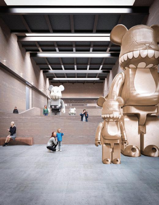 Nave central de exhibiciones de gran formato con arte contemporáneo