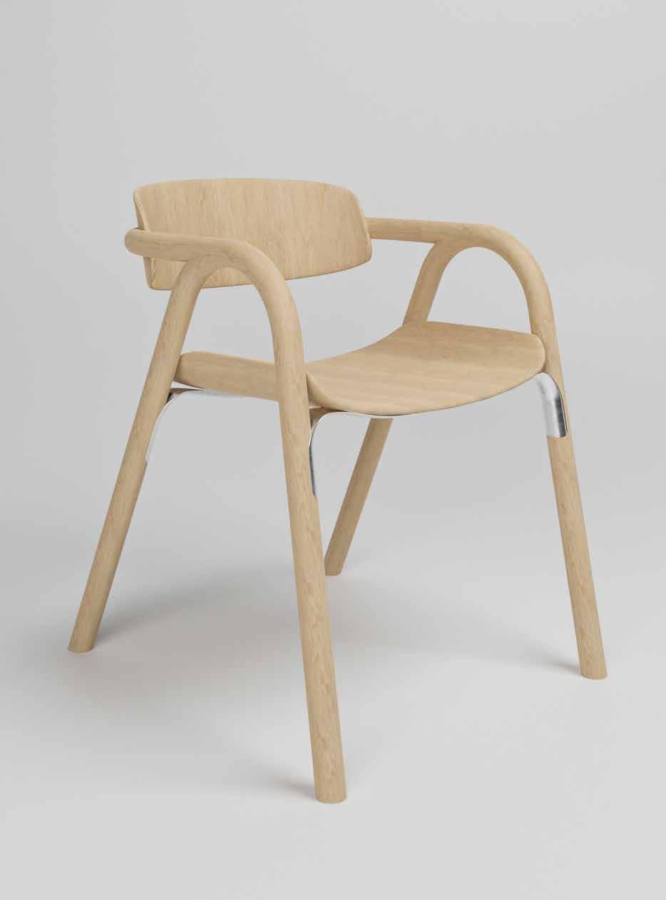 Benjamina is a chair with an organic expression that combines structural strength with its delicate curves. It explores the concept of split wood giving a feeling of modernity combined with craftsmanship