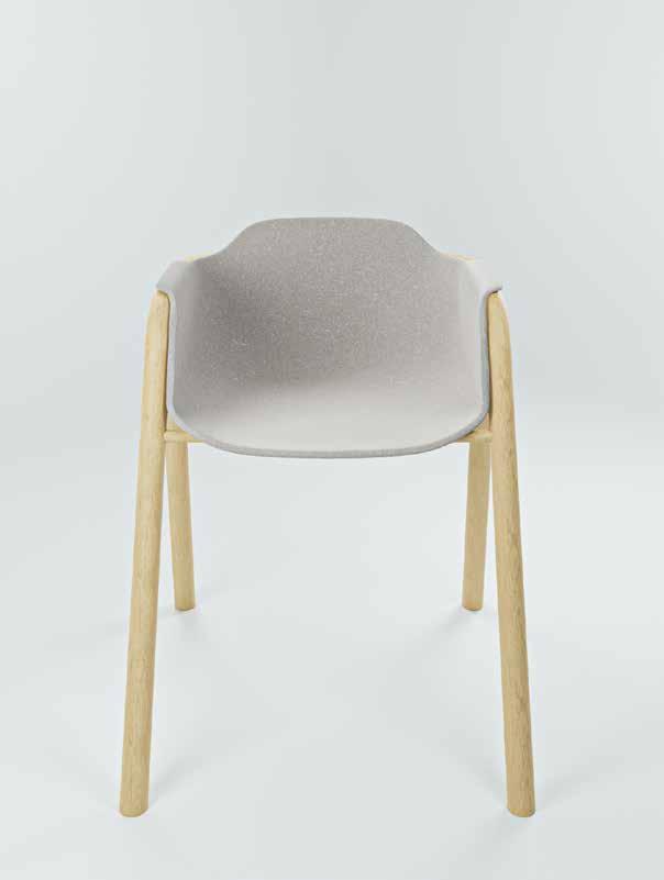The chair is made of beech wood, steam bent to create the structure. The seat is made of Pet Felt a recycled material made of discarded fabrics, aligning with Magis’ sustainability mission.