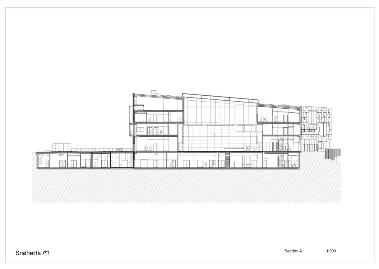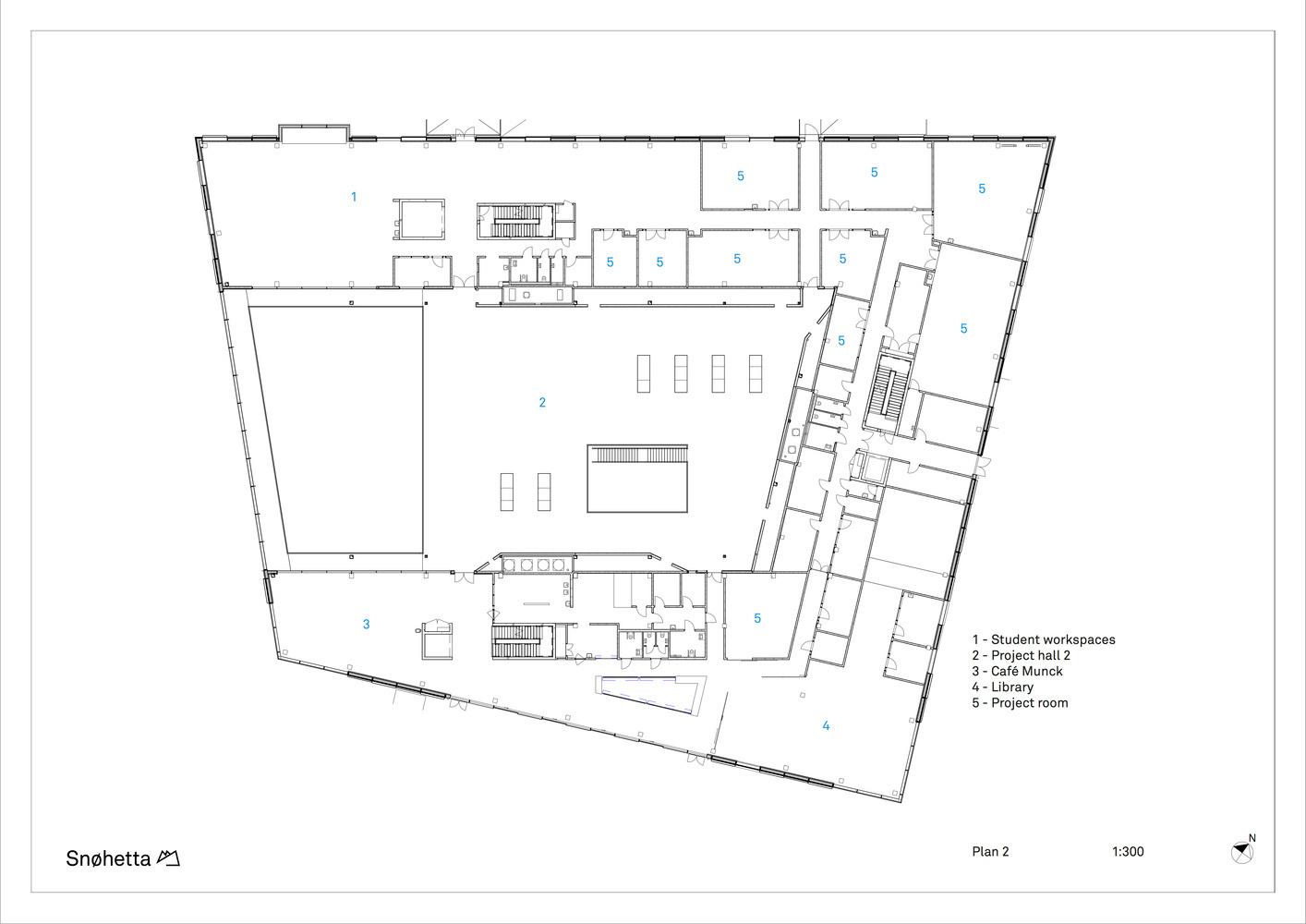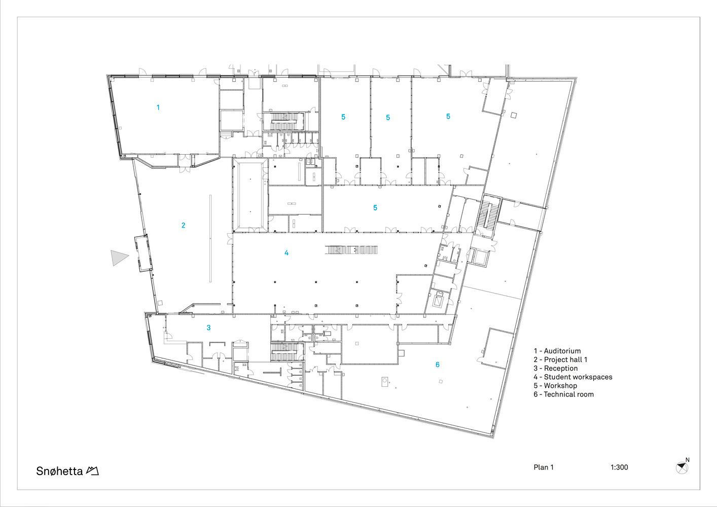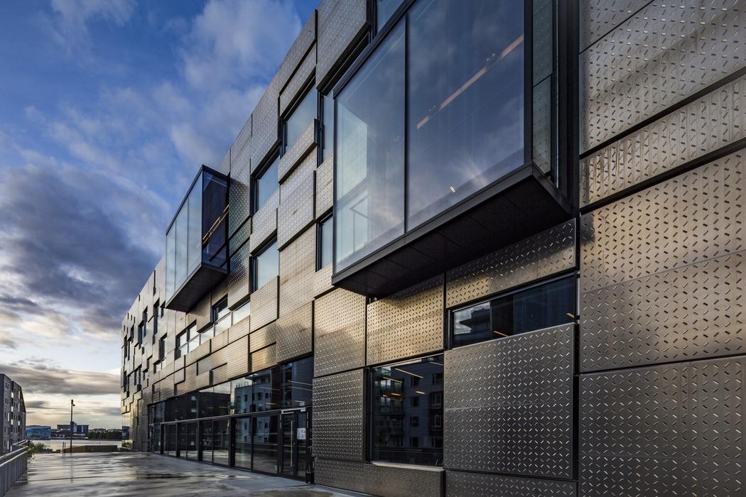 La paleta de materiales tiene una clara referencia a la costa noruega, utilizando materiales bien establecidos, como pisos de bloques de madera de pino, chapa de abedul, aluminio en bruto, acero en bruto y hormigón