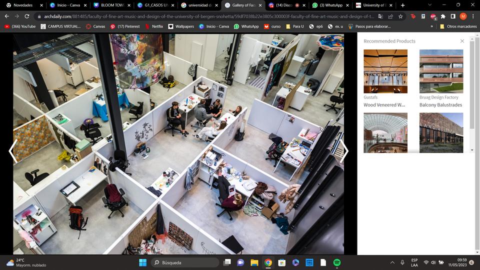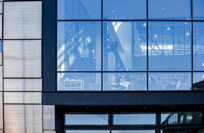 Sala de proyectos como símbolo del proceso de unificación de seis edificios. Reflejo de la ambición de estimular la colaboración y el intercambio interdisciplinario.