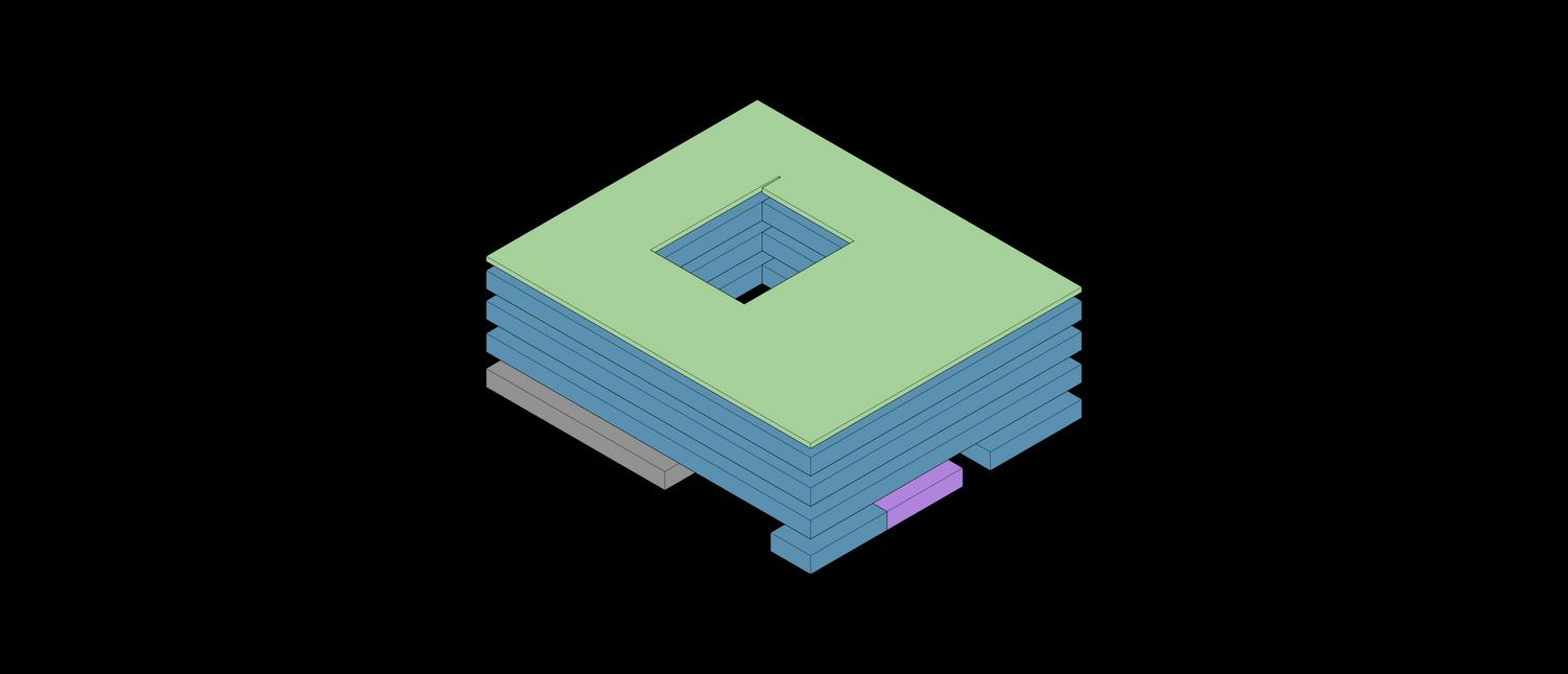 La paleta de materiales tiene una clara referencia a la costa noruega, utilizando materiales bien establecidos, como pisos de bloques de madera de pino, chapa de abedul aluminio en bruto, acero en bruto y hormigón