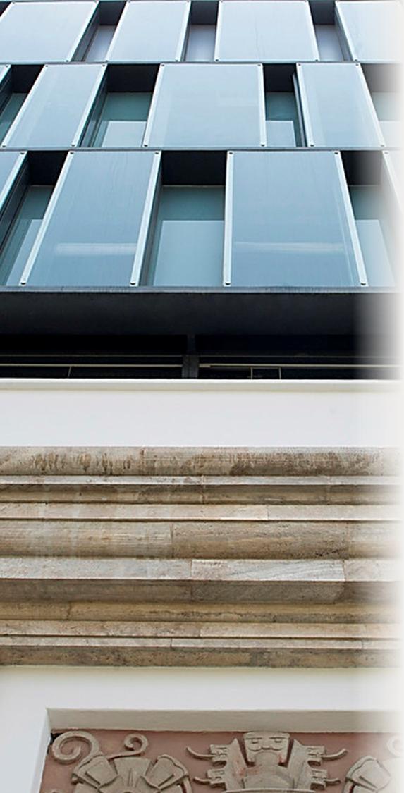 Remarca los distintos tiempos de vida para una relación sin opacar el estilo de la edificación anterior.
