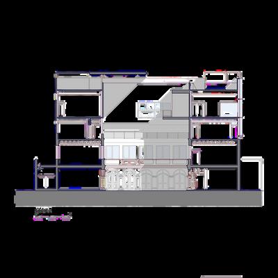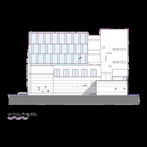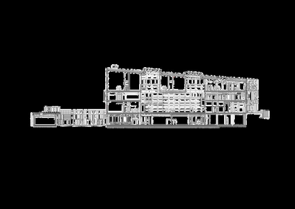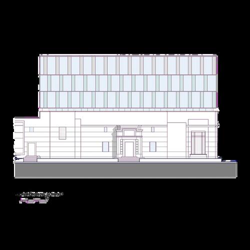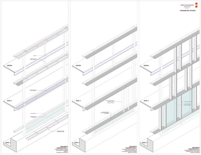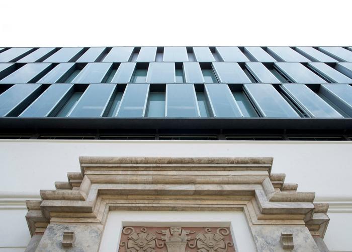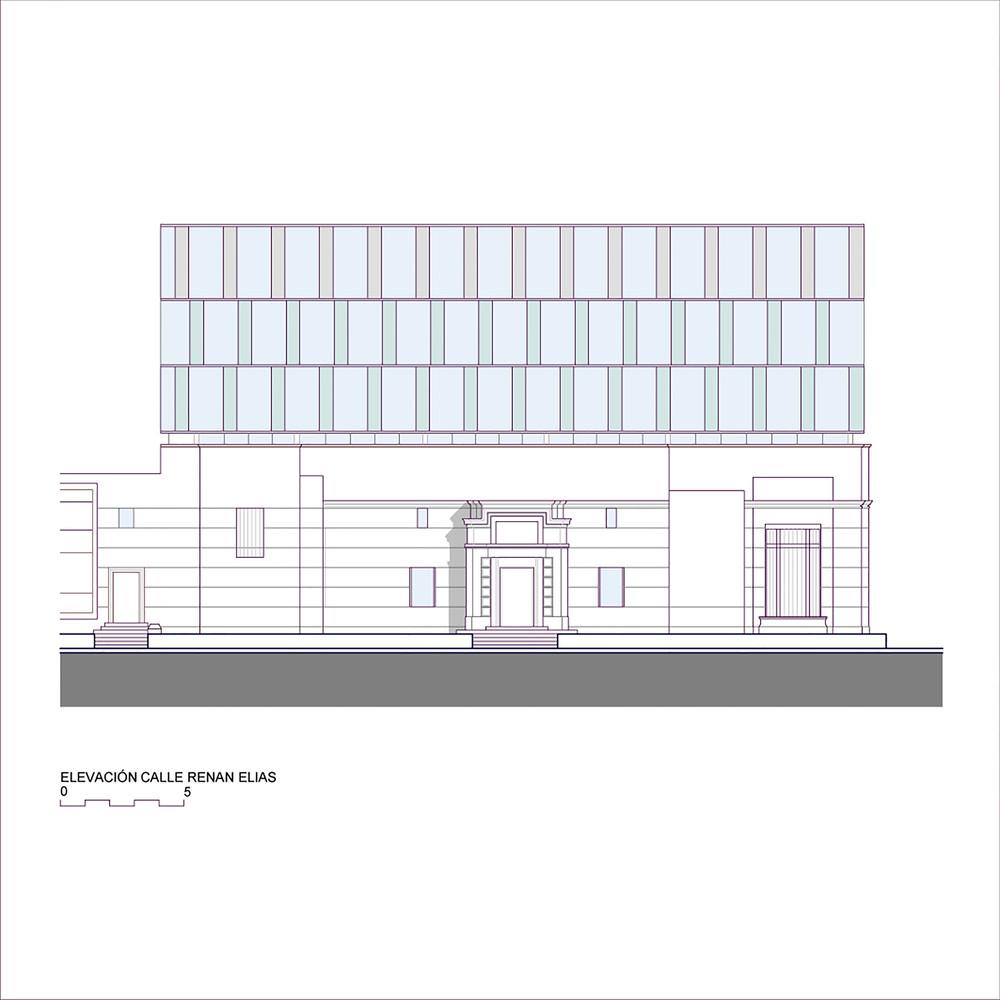 La ampliación se apoya en la estructura metálica prevista en el proyecto de P. Baracco y propicia una lectura ligera en fachada, de modo que la edificación original no se vea apabullada por un ‘peso visual’ añadido.