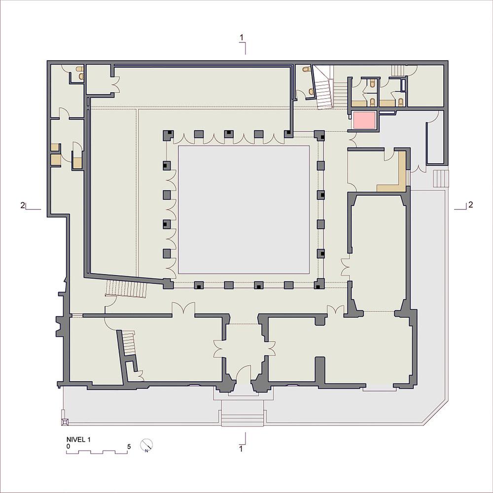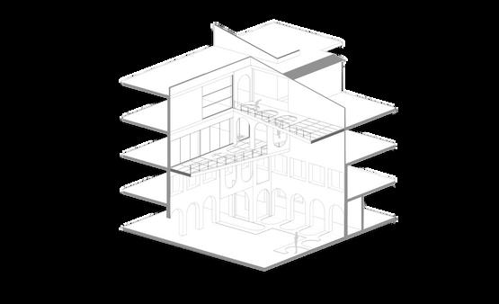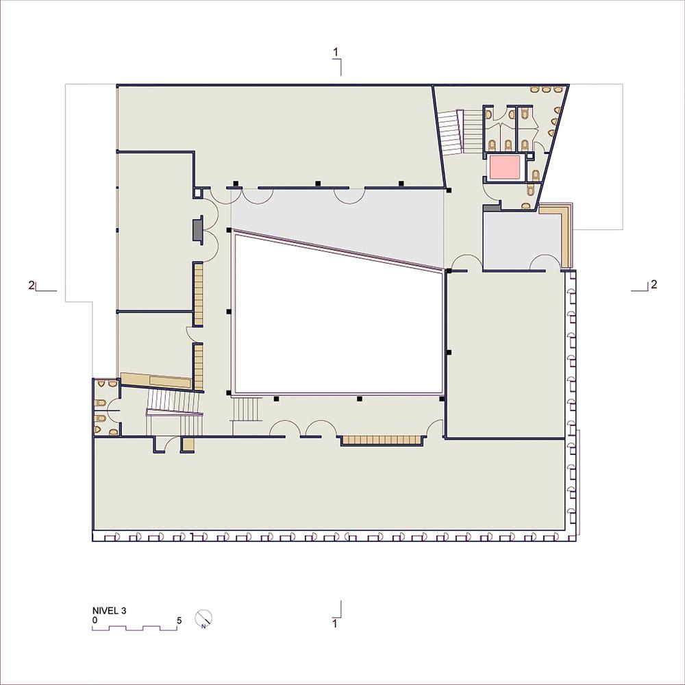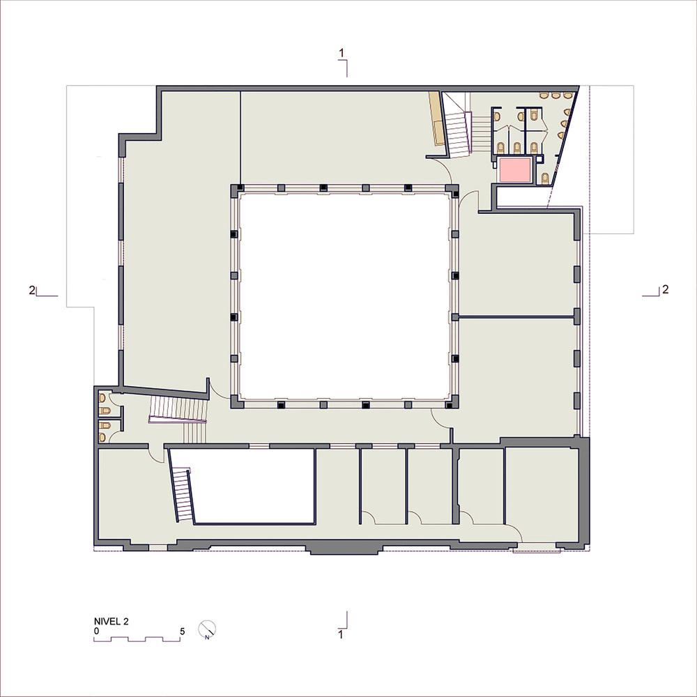 El viejo edificio constaba de dos niveles el cual contaba con un espacio central a partir de ello se le adiciona un