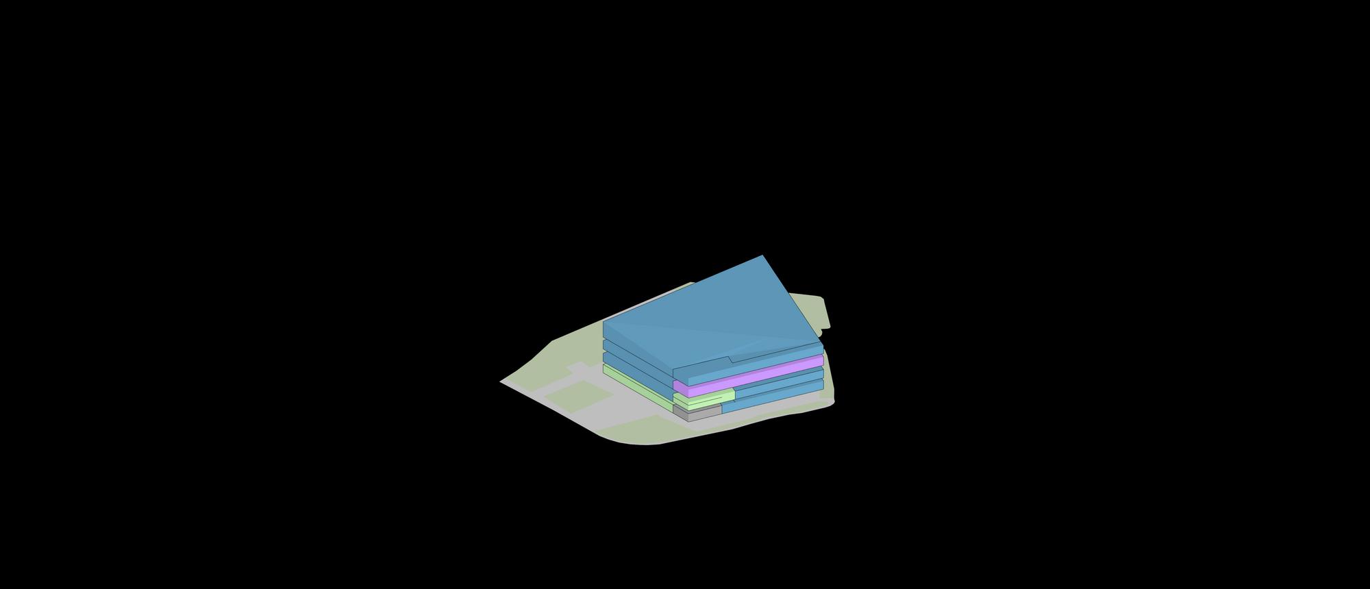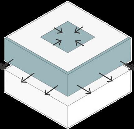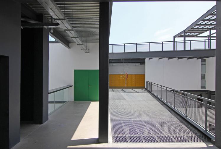 Estas pasarelas fungen de patios suspendidos, creando espacios de aprendizaje informal intermedios entre el patio tradicional y la azotea accesible