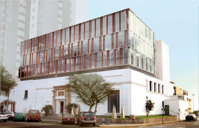 Le da énfasis a unir el pasado con lo moderno, unificando el volumen del nuevo edificio con la casona.