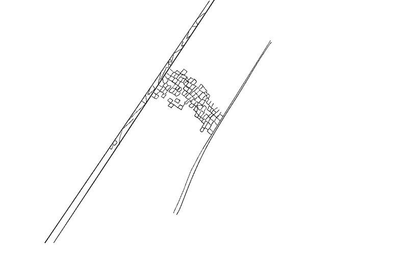Espacios virtuales: Delimitan los espacios virtualmente Retiros: Espacios abiertos en el proyecto que amplían la senda peatonal.