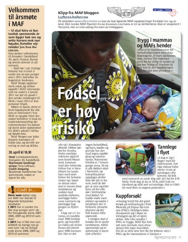 Klipp fra MAF-bloggen Luftens-helter.no På nettsiden www.luftens-helter.no kan du lese løpende MAF-oppdateringer fra både inn- og utland. Den norske MAF-flyveren EIVIND JOHANNES LINDTJØRN er en av skribentene. Han er stasjonert i Tanzania. Her er små utdrag fra noen av innleggene.