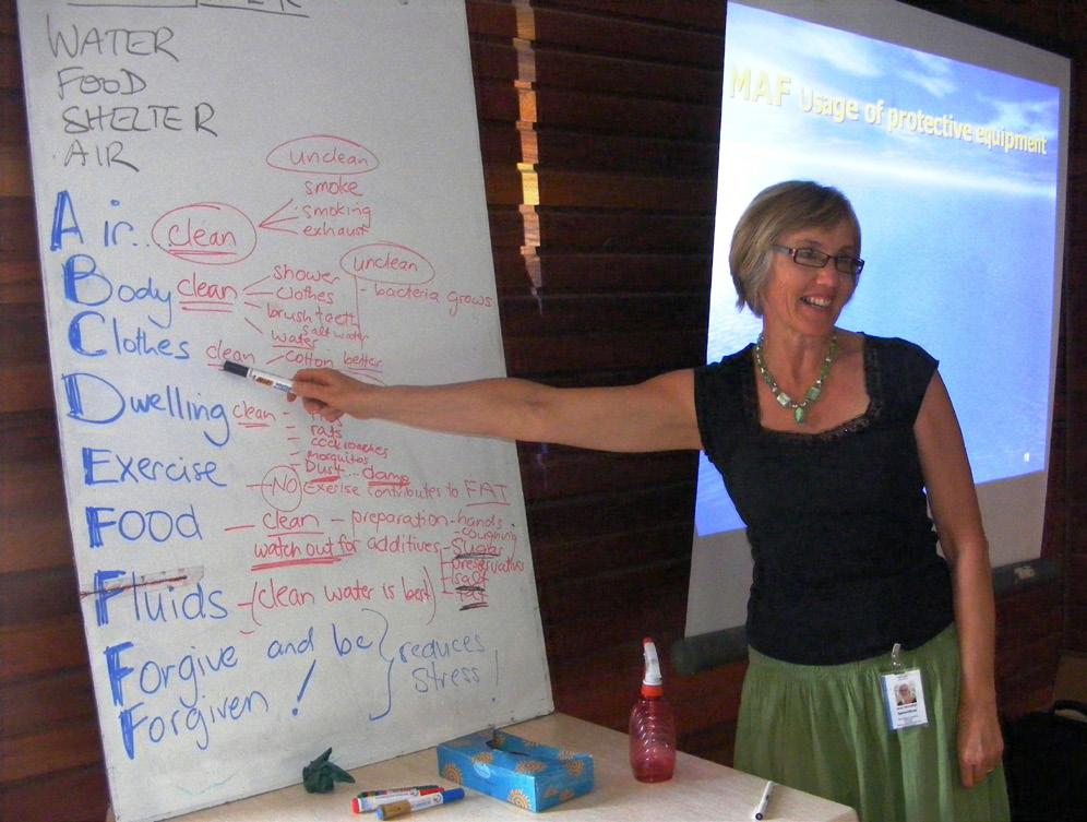 Helping by being available to try to answer health queries for International Staff and sometimes accompanying them to Kudjip Hospital.