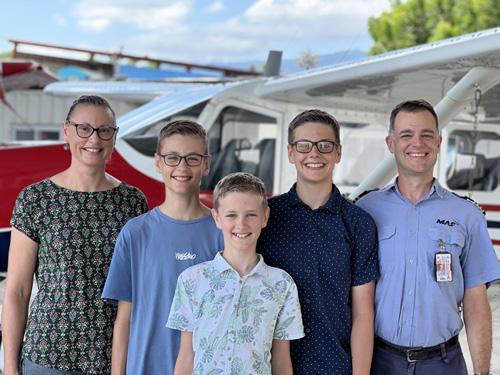 Nick, Ruth, Benji, Sam, and Eddie Hitchins have been serving with MAF in Timor-Leste for over two years. Nick is Pilot/Country Director, while Ruth, when she’s not supervising the boys’ Distance Education, enjoys providing continuity of care for our medevac patients in her Chaplaincy role.