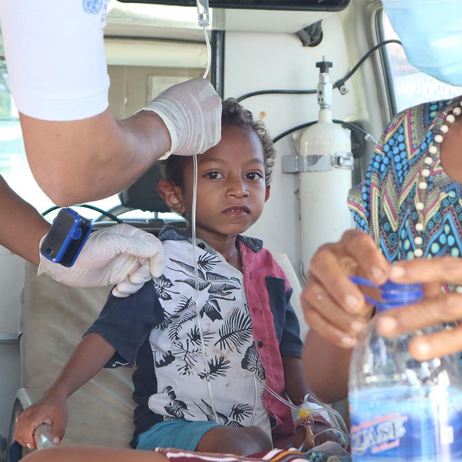 At midnight, my son Bendito was in severe fever. I was shocked, and I panicked because I found blood running out of his nose. We immediately brought him to the clinic. The doctor said he had dengue fever and needed to be transferred to the national hospital in the capital Dili for specialist treatment.