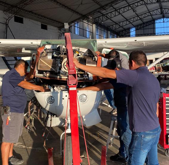 RIGHT Carrying out an engine replacement on one of the three aircraft serving in Ecuador
