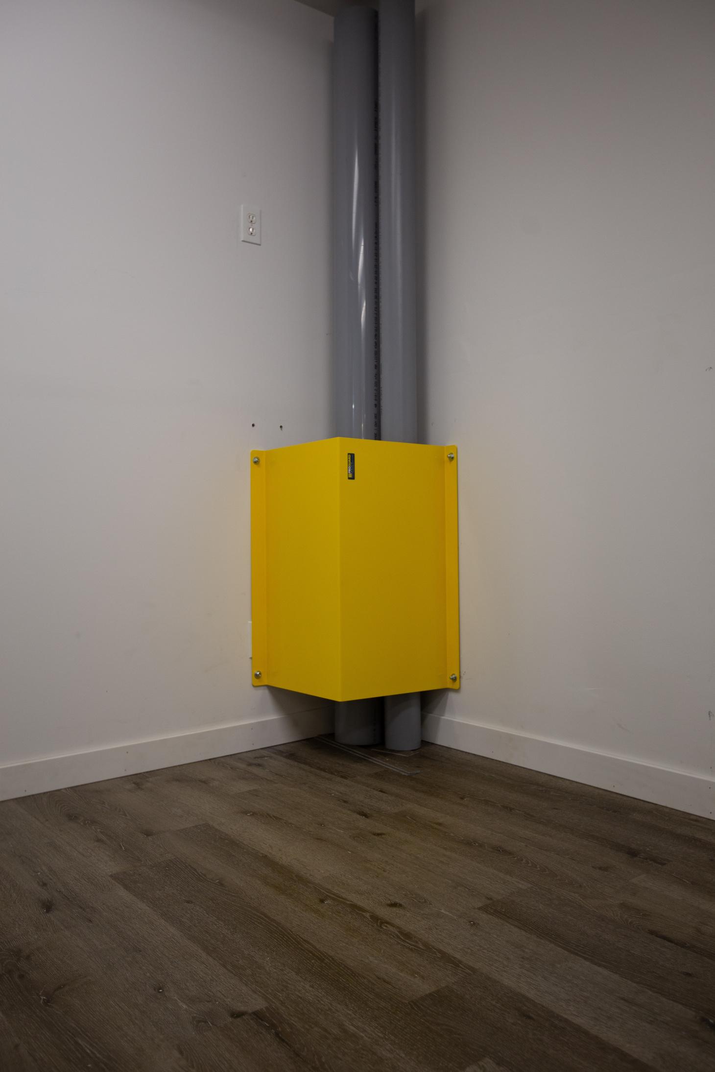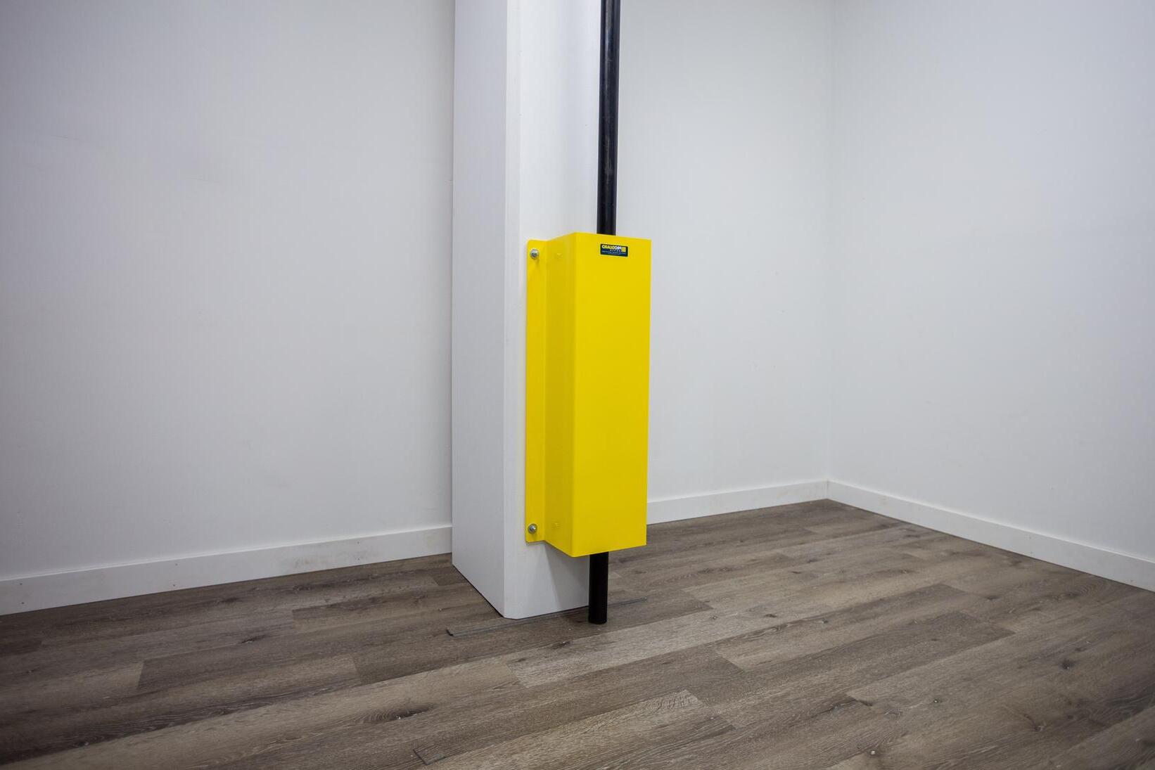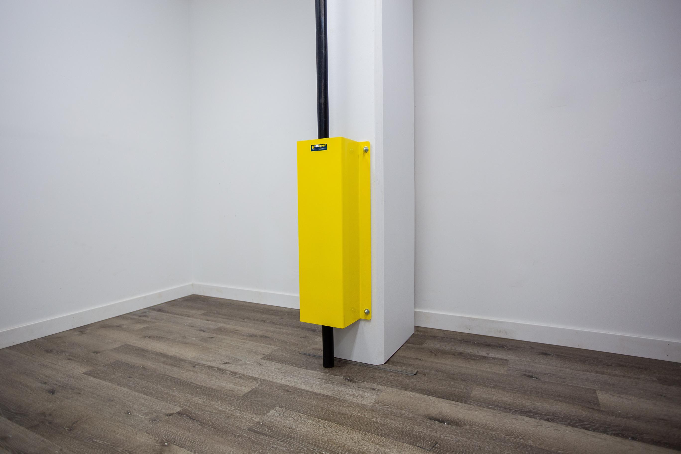 P r o t e c t o r c a n b e e a s i l y m o u n t e d t o c o n c r e t e , w o o d f r a m i n g , o r a n y o t h e r d u r a b l e w a l l m a t e r i a l f r o m i t s f o u r m o u n t i n g p o i n t s .