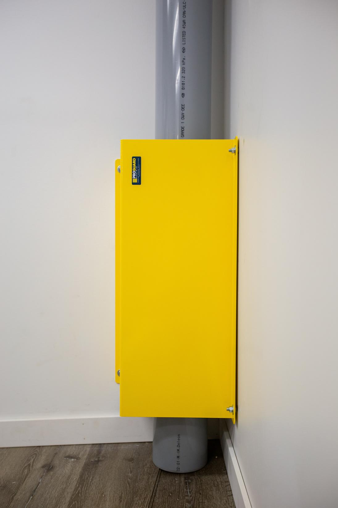 T h i s d e s i g n a l l o w s f o r c o m p l e t e p r o t e c t i o n o f a n y i t e m o n c e i n s t a l l e d ( i . e . , f a u c e t s , w a t e r s h u t - o f f v a l v e s , e l e c t r i c a l p l u g s , e t c . ) .