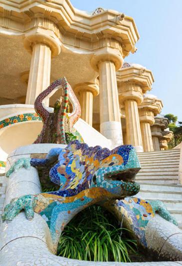 El Parque Güell es un destino ineludible si se quiere aprovechar una visita a Barcelona. En 1984 fue declarado Patrimonio de la Humanidad por la UNESCO, y no es para menos. Con una extensión de 17 hectáreas, este alucinante parque está decorado con mosaicos realizados con trocitos de cerámica de colores, vistosas figuras inspiradas en la naturaleza y en simbolismos tanto políticos, como religiosos. Gaudí aprovechó el desnivel de 60 metros de la montaña y creó un camino de elevación espiritual, en cuya cima planeaba construir una capilla, que finalmente fue sustituida por el Monumento al Calvario, desde el que se obtienen las mejores vistas de la ciudad. Lo mejor es que en el recinto del parque se encuentra la Casa Museo Gaudí, donde se expone una colección de sus obras.
